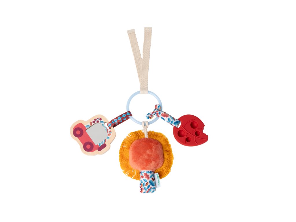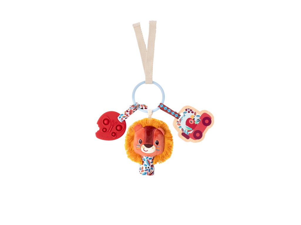 Zmyslová hračka na zavesenie pre deti od 3 mesiacov. Deti na hračke upútajú rôzne materiály a farby. Levíček je vybavený pretlačovacou aktivitou a zrkadielkom. To všetko láka dieťa k dotýkaniu, čím sa prirodzene podporuje rozvoj motoriky a koordinácie ruky a oka. Hračka nad postieľkou alebo na hrazdičke deti zaujme, vyzýva k dotýkaniu, čím podporuje koordináciu a stimuluje zmyslový vývoj. Materiál: drevo, silikón, recyklovaný polyester, výplň: 100 % recyklovaný polyester. Rozmery hračky sú 25 x 20 x 3 cm. Možno prať v práčke na jemný cyklus po vybratí drevenej a silikónovej časti.