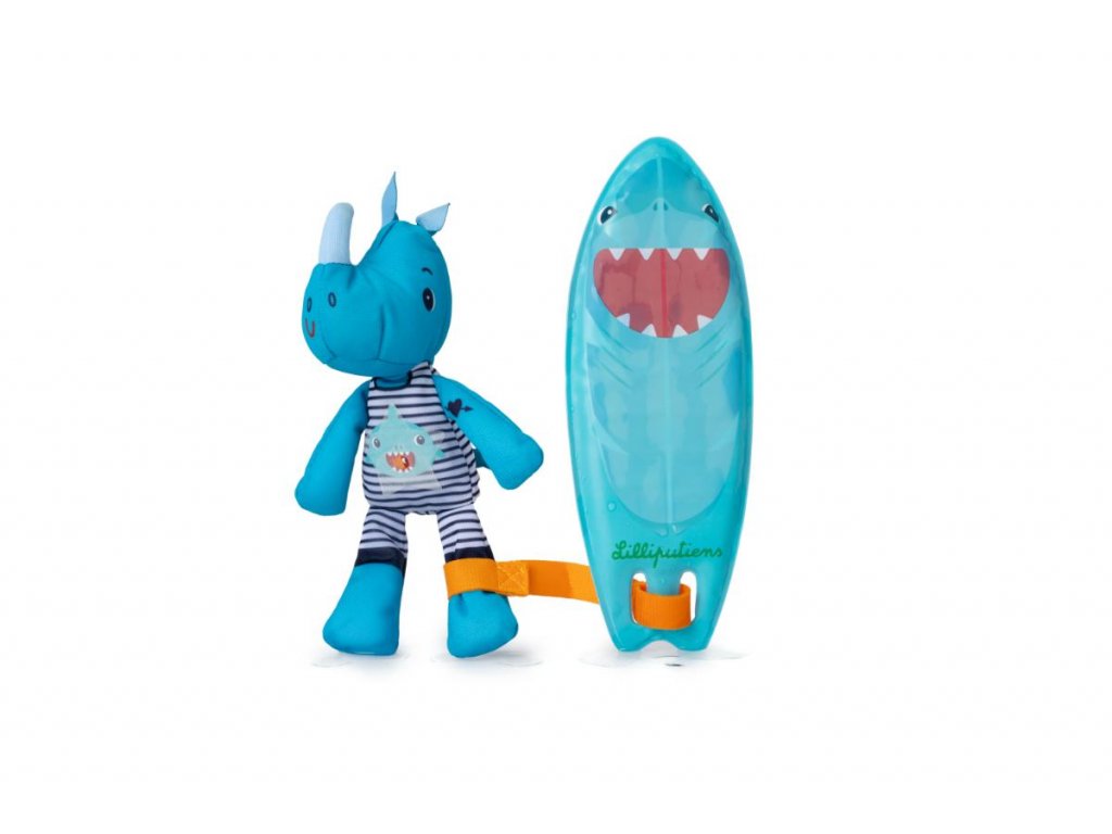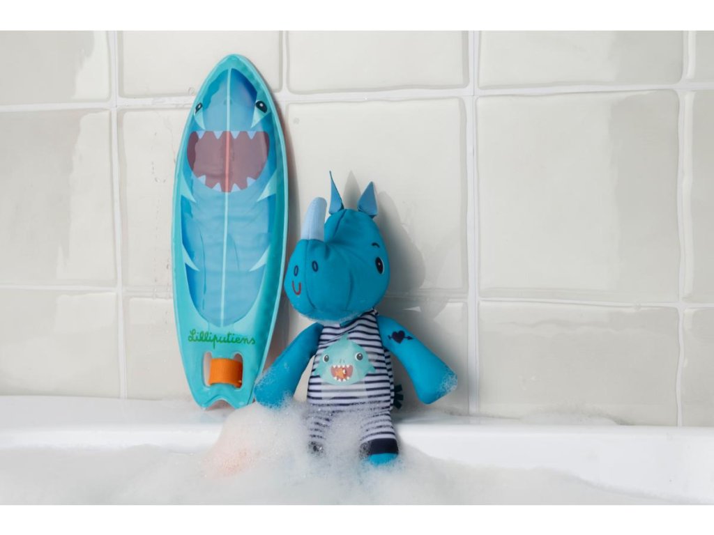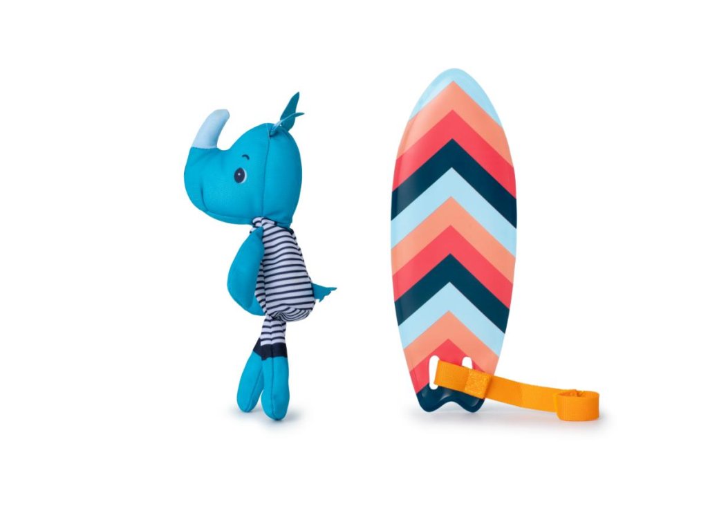 Nosorožec Marius kĺže po vlnách na svojom kúzelnom surfe. Keď skočí do vody, na jeho neopréne a surfovacej doske sa objavia kresby. Pozor blížia sa vlny, poďme surfovať a baviť sa! S touto hračkou je pre deti zábava počas večerného kúpeľa zaručená! Hračka pre deti od 12 mesiacov je vyrobená zo 100 % polyesteru, rozmery sú 20 x 13 x 7 cm. Po kúpeli opláchnite čistou vodou a nechajte uschnúť.