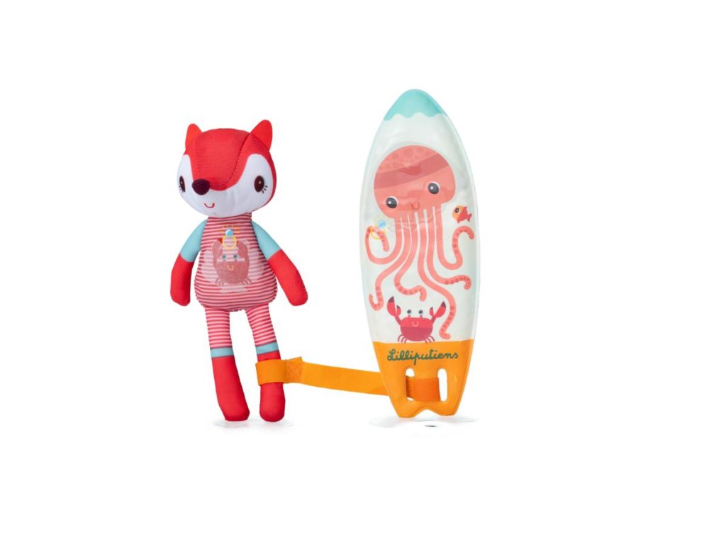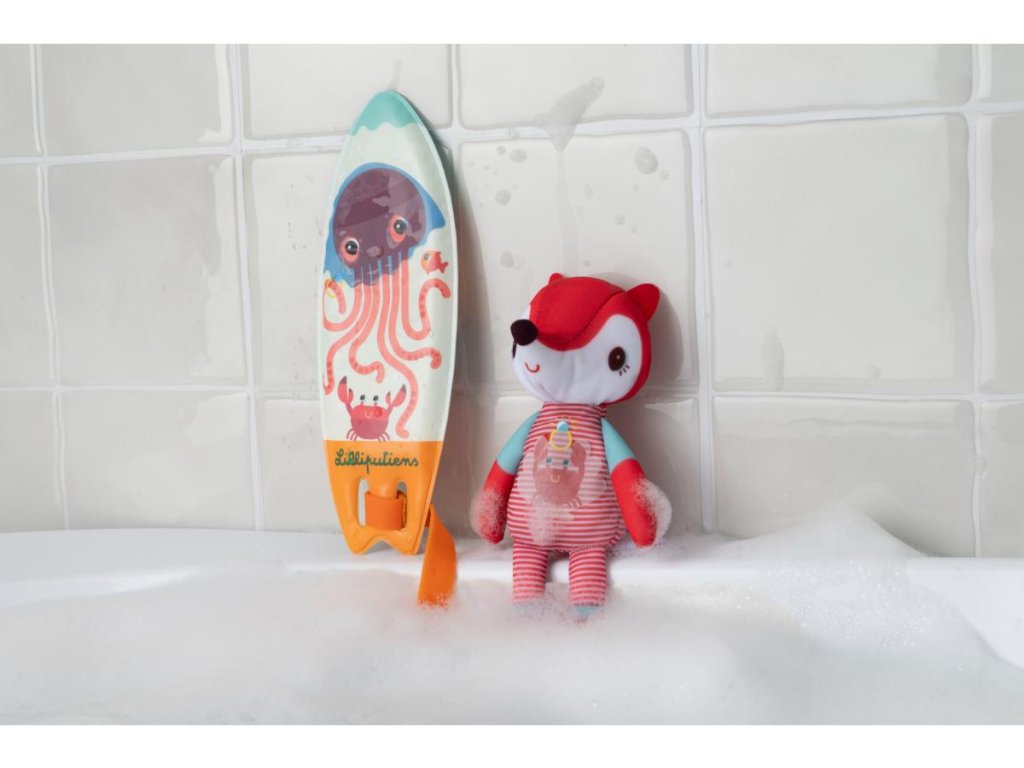 Líška Alice kĺže po vlnách na svojom kúzelnom surfe. Keď skočí do vody, na jej neopréne a surfovacej doske sa objavia kresby. Pozor blížia sa vlny, poďme surfovať a baviť sa! S touto hračkou je pre deti zábava počas večerného kúpeľa zaručená! Hračka pre deti od 12 mesiacov je vyrobená zo 100 % polyesteru, rozmery sú 20 x 13 x 7 cm. Po kúpeli opláchnite čistou vodou a nechajte uschnúť.