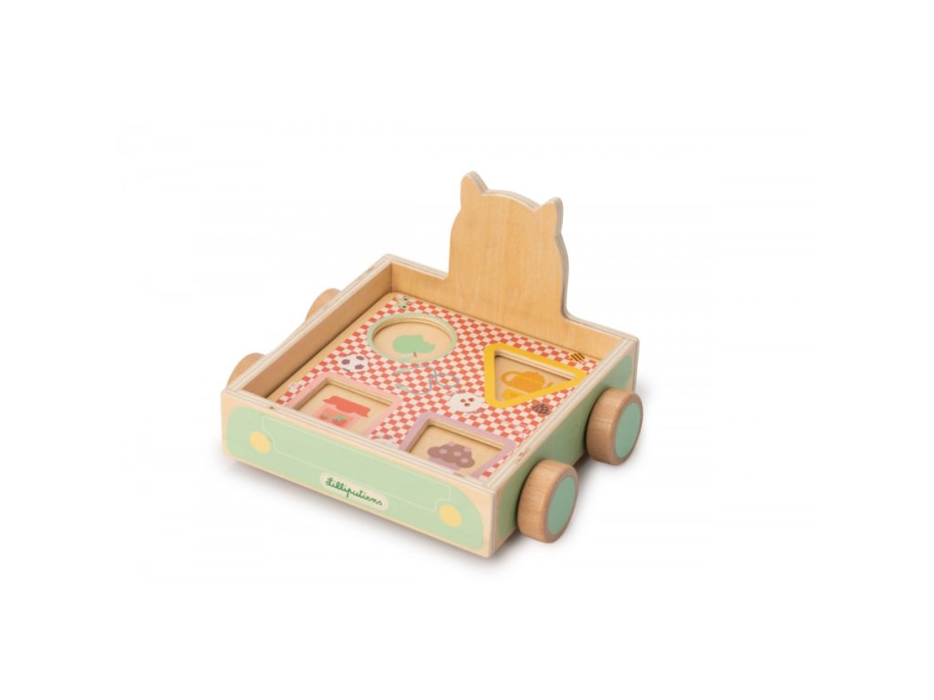 Lilliputiens - ťahací vozík vlk Ľudovít s aktivitami - vkladačka + tvary