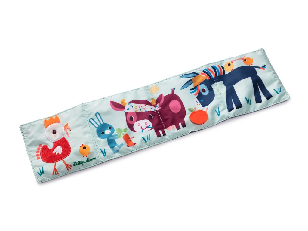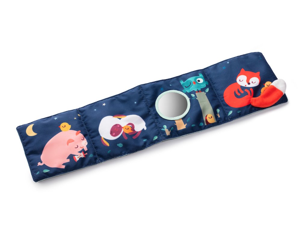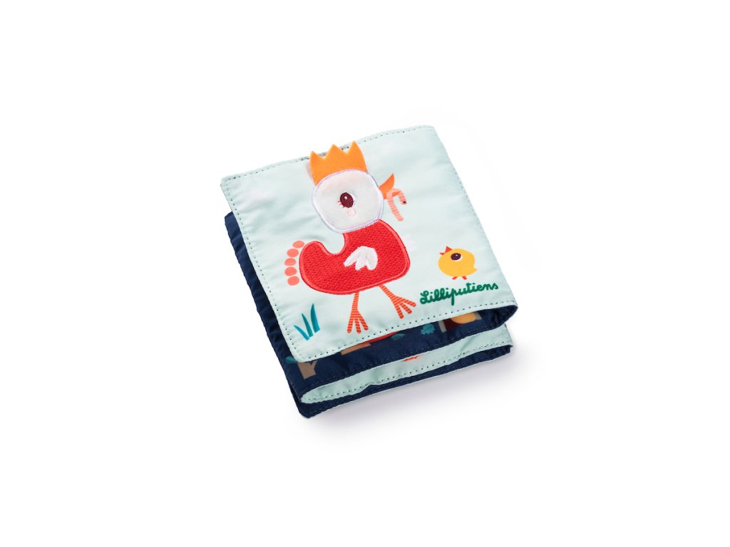 Malé textilné leporelo pre deti od 9 mesiacov. Môžete si knižku rozložiť a na jednej strane si prezerať, čím sa zvieratká počas dňa kŕmia. Až si dostatočne jednu stranu prezriete, stačí knižku otočiť a zistíte, ako zvieratká z farmy spia v noci. Rozmery knižky sú 13 x 13 x 3 cm. Vyrobené zo 100 % polyesteru. Možno prať na 30 °C na šetrný program.Dodatočné parametre