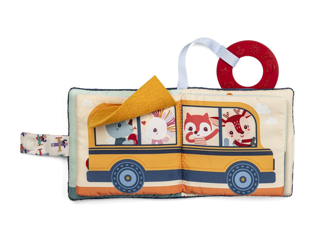 Pobavte tých najmenších krásnou textilnou knižkou s psíkom Julesom a jeho kamarátmi. Hodí sa pre deti od 6 mesiacov. Vtipné obrázky a iné aktivity zaujmú a pobavia každé batoľa. Knižka má pútko na suchý zips, vďaka ktorému môžete knižku ľahko zavesiť na kočiarik alebo na postieľku. Knižka stimuluje zrak, sluch a deti nájdu aj všité hryzadlo. Hryzadlo deťom uľaví pri prerezávaní prvých zúbkov. Knižka neobsahuje text, ale veselé ilustrácie, ktoré poskytujú priestor pre rozprávanie jednoduchých príbehov. Možno prať na ručné pranie. Materiál: polyester, bavlna, silikón. Rozmery: 10 cm x 3 cm x 10 cm.