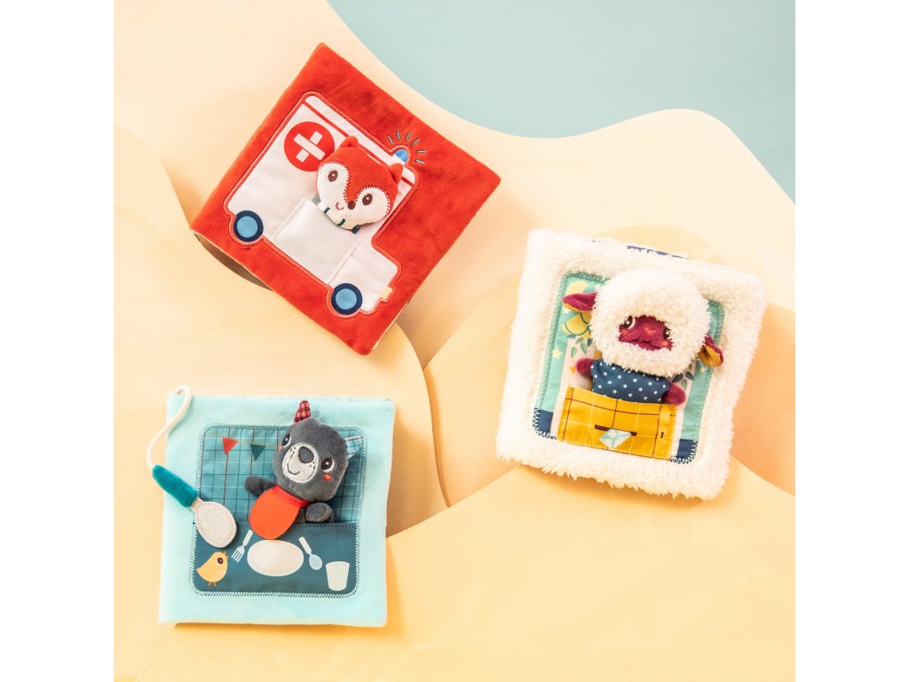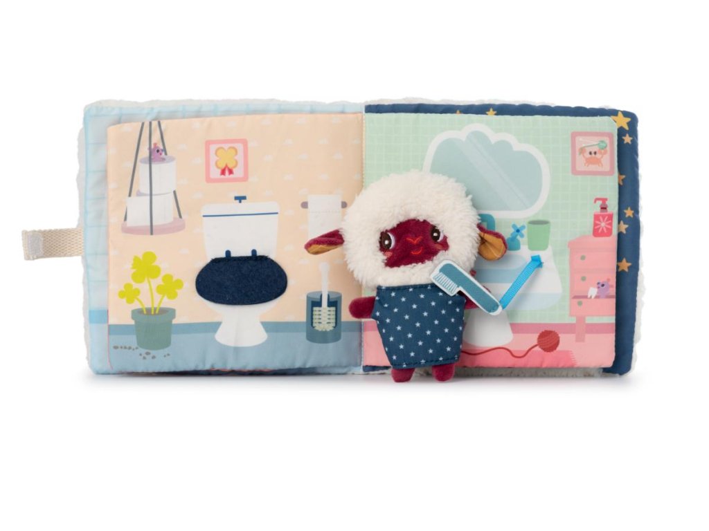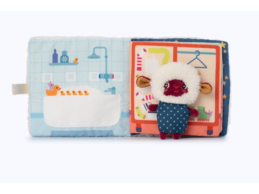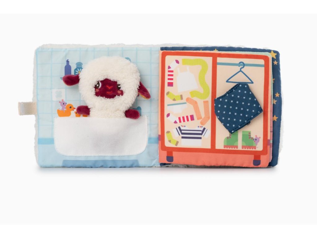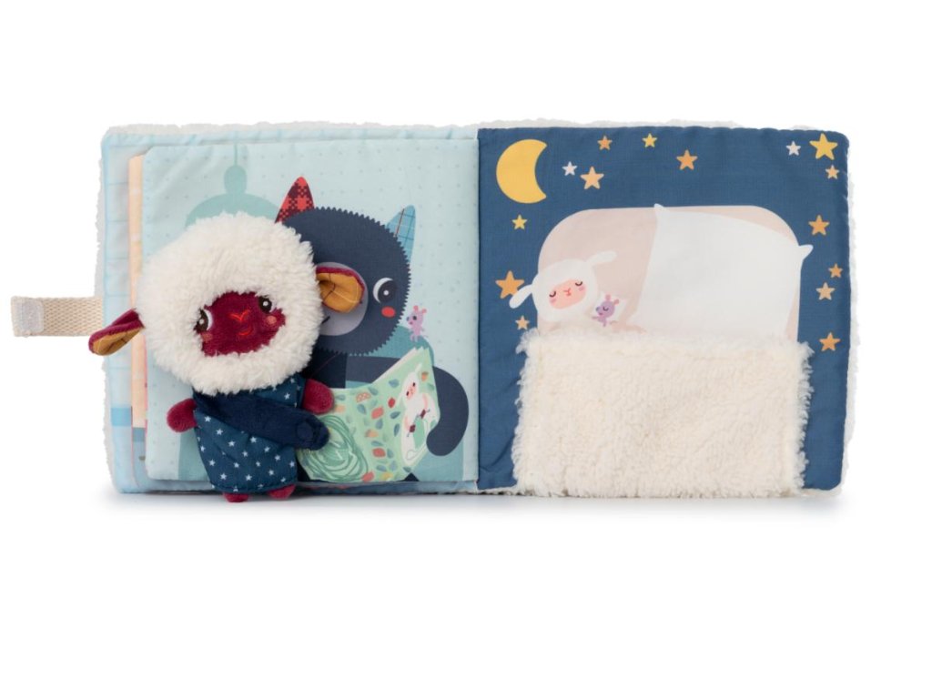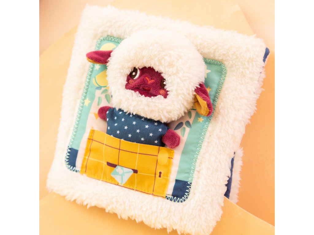 Lilliputiens - textilná knižka s prstovou bábkou - dobrú noc s ovečkou Yvon