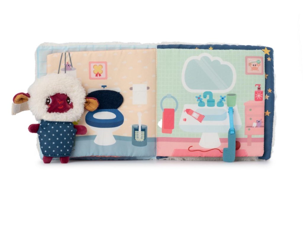 Dobrú noc, milé deti! Zábavná textilná knižka pre deti od 12 mesiacov deťom ukáže, ako sa ovečka Yvon pripravuje do postieľky. Stránku za stránkou objavujú deti každodenný rituál pred spaním: vykúpať sa, vyčistiť si zuby, vypočuť si rozprávku a ísť spať. Súčasťou knižky je aj prstová bábka ovečky Yvon. Vyrobené zo 100 % polyesteru, rozmery hračky sú 16 x 16 x 5,5 cm. Možno prať v práčke na 30 °C – šetrný cyklus.