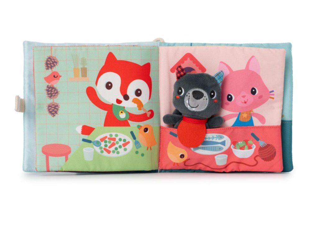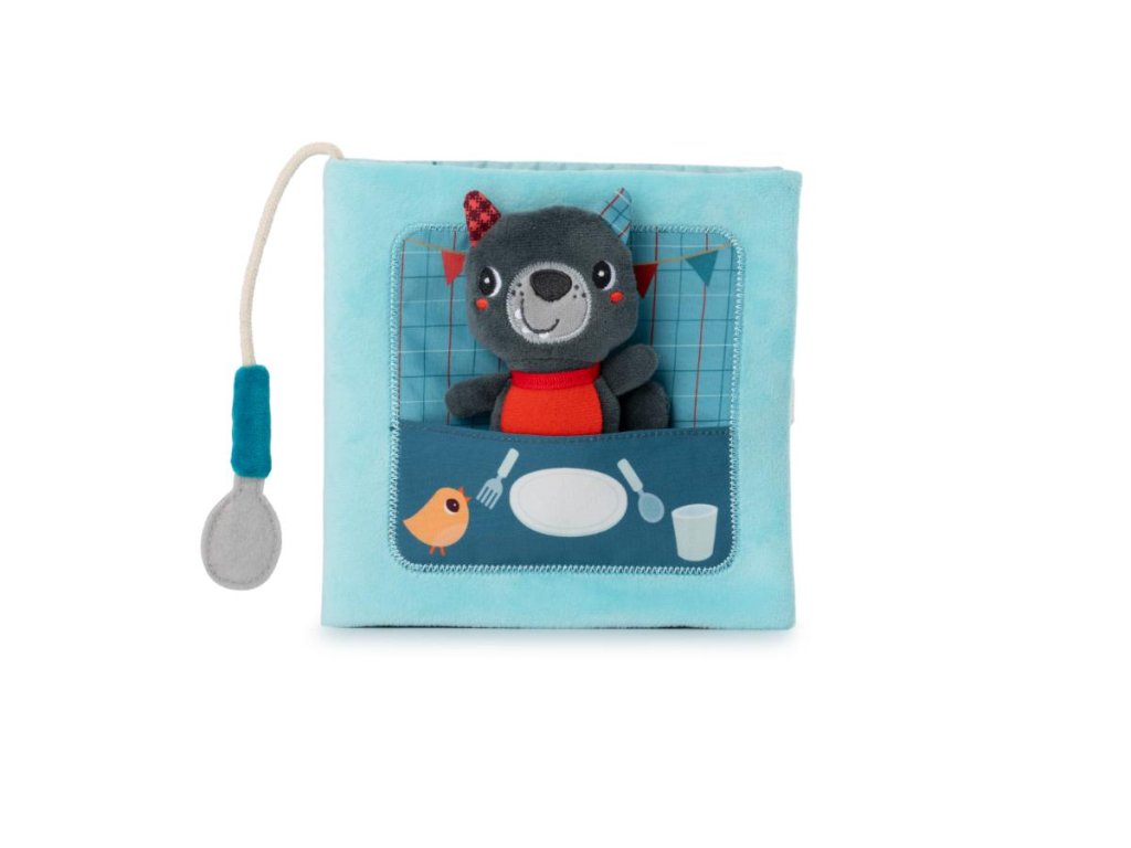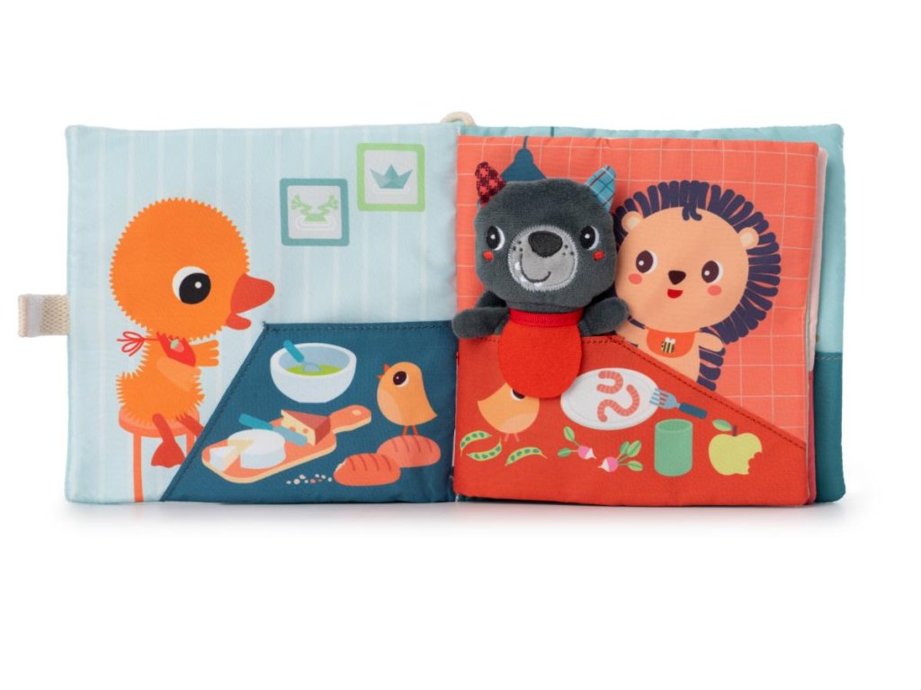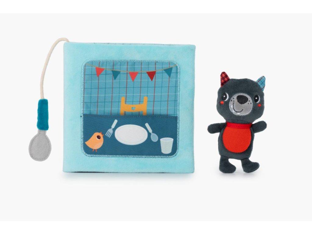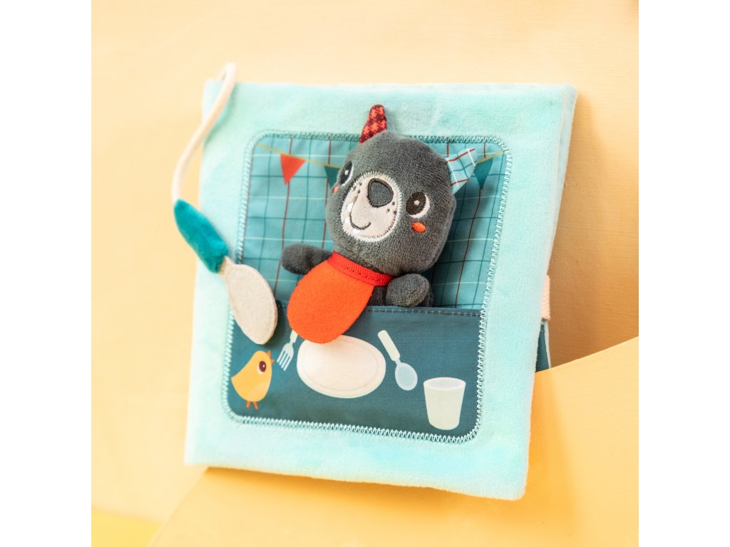 Lilliputiens - textilná knižka s prstovou bábkou - vlk Ľudovít sa učí jesť
