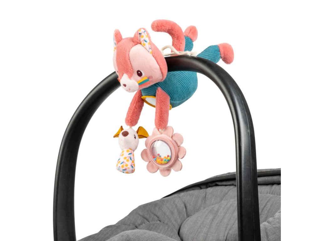 Mačička Jeanne je závesná hračka, ktorá je ideálna pre zabavenie vášho bábätka nech už je v postieľke, v aute alebo v kočíku. Jeanne zaujme rozmanitými zvukmi, odrazmi a textúrami. Vďaka guľatému zrkadielku na brušku Jeanne sa môže bábätko pozorovať, malá kamarátka myška má v sebe šuštivý papier a kvetinka je hrkálka s farebnými guľôčkami. Vďaka šnúrke sa táto hračka ľahko vešia aj odopína. Táto hračka je vhodná od 3 mesiacov. Možno prať na ručné pranie.