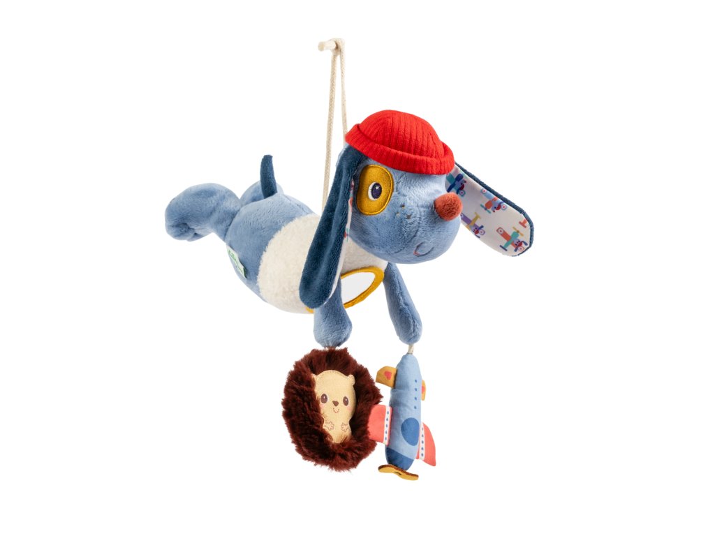 Psík Jules je závesná hračka, ktorá je ideálna pre zabavenie vášho bábätka nech už je v postieľke, v aute alebo v kočíku. Jules zaujme rozmanitými zvukmi, odrazmi a textúrami. Vďaka guľatému zrkadielku na brušku Julesa sa môže bábätko pozorovať, malé lietadielko má v sebe šuštivý papier a kamarát ježko je hrkálka s farebnými guľôčkami. Vďaka šnúrke sa táto hračka ľahko vešia aj odopína. Táto hračka je vhodná od 3 mesiacov. Možno prať na ručné pranie.