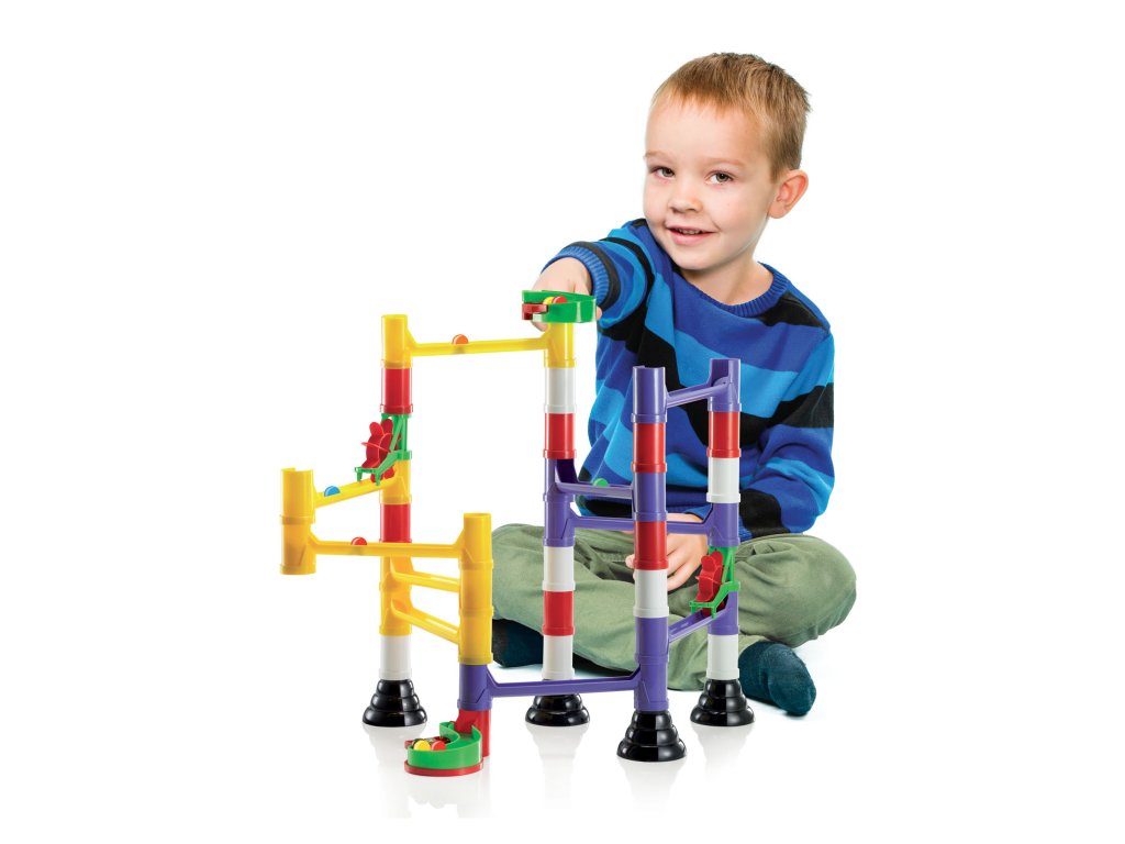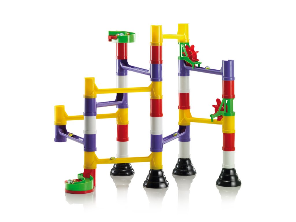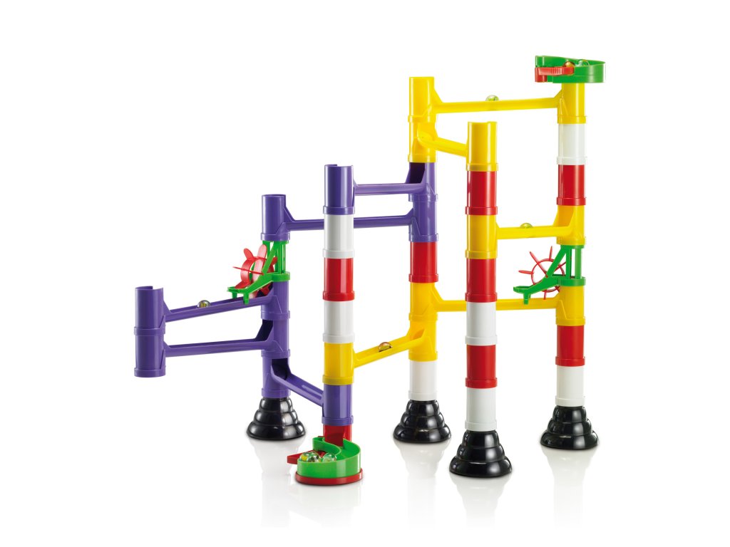 Farebná guľôčková dráha pre malých staviteľov od 4 rokov je plná zábavy a prekvapení! Diely do seba ľahko zapadajú, takže si deti môžu postaviť vlastný tobogan plný zatáčok, mostov, lopatkových kolies a ďalších prekážok. Potom stačí stlačiť pružinu v zásobníku a sledovať, ako guľôčky svištia dole. Hra rozvíja predstavivosť, logické myslenie a zručnosť. Deti môžu stavať podľa obrázku na obale alebo vytvárať vlastné originálne trate. S každým zostavením si deti trénujú trpezlivosť a učia sa chápať príčinu a následok. Diely sú pevné, odolné a navrhnuté tak, aby šli ľahko spájať.