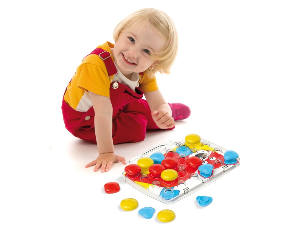 FantaColor Baby je kreatívna hra s mozaikou určená deťom od 18 mesiacov. Obsahuje 30 veľkých farebných hríbikov (priemer 46 mm), ktoré sú ľahko uchopiteľné pre malé detské ruky. Hríbiky deti vkladajú do pevnej perforovanej dosky. Hra pomáha rozvíjať jemnú motoriku, koordináciu oko–ruka, rozlišovanie farieb i prvé logické schopnosti. Súčasťou balenia je 8 obojstranných kariet s obrázkami, ktoré slúžia ako podklady pre skladanie. Všetko je uložené v praktickom kufríku s držadlom pre ľahké prenášanie.