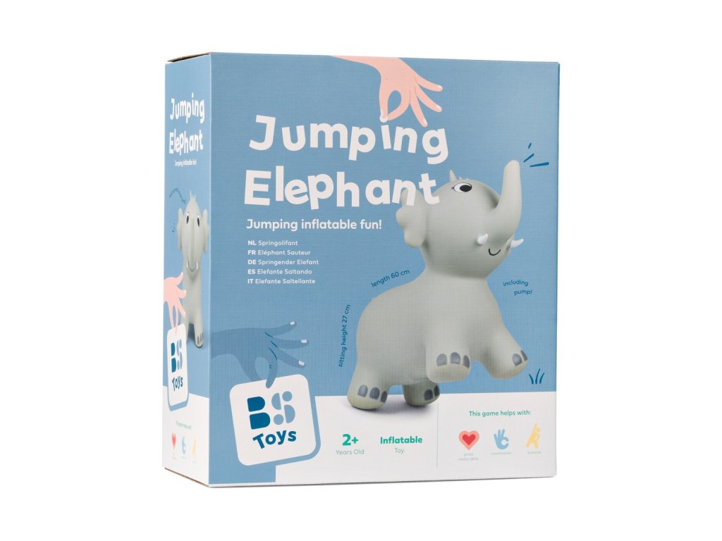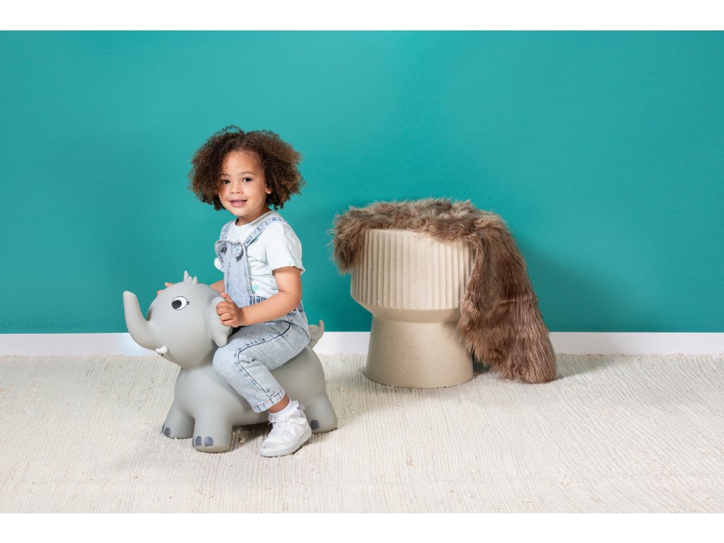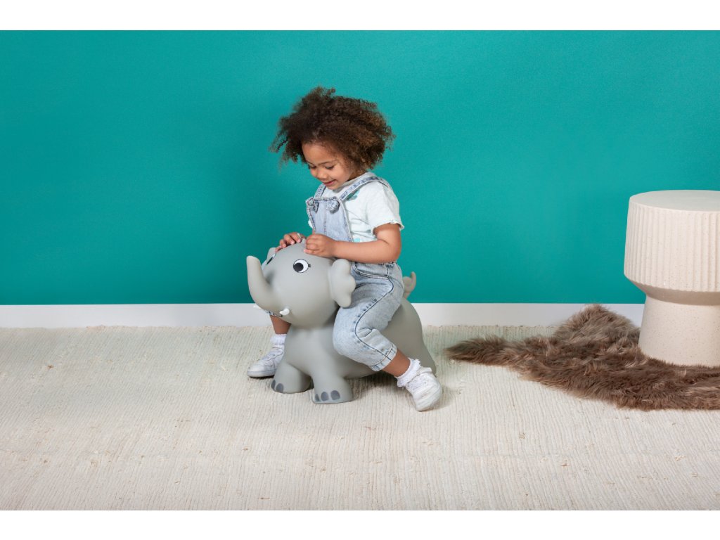 Nafukovacia hračka v tvare slona je určená pre malé deti od 18 mesiacov. Deti si na ňu môžu sadnúť a odrážať sa nohami od zeme a skákať, hopsať a hrať sa. Hračka je vhodná ako do interiéru, tak na záhradu (na rovnom povrchu). Pri hre deti posilňujú nohy, zlepšujú rovnováhu a učia sa lepšie ovládať svoje telo. Obsah balenia: nafukovací slon, pumpička pre ľahké nafúknutie.