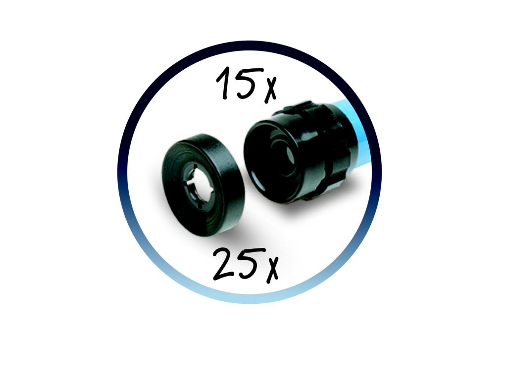 Jednoduchý, ale účinný teleskop so statívom – ideálny ako prvý astronomický prístroj pre deti od 6 rokov. Je vyrobený z ekologického ABS plastu. Súčasťou je aj ochranné viečko okuláru, chrániace optiku pred poškodením. Teleskop je umiestnený na ľahkom statíve, ktorý poskytuje dostatočnú stabilitu. Tento teleskop sa hodí pre pozorovanie krajiny, prírody aj nočnej oblohy. Je skvelou voľbou pre rozvíjanie záujmu o prírodné vedy u detí. • Optika: 5 členov • Objektív: priemer 35 mm • Zväčšenie: 15 x a 25 x (dva okuláry) • Rozmery: 20,5 x 5 cm Prístroj sa predáva vo viac farebných variantoch – červenom, modrom, zelenom, žltom. Pokiaľ máte záujem o konkrétnu farbu, napíšte nám, prosím, svoju voľbu do poznámky k objednávke.Dodatočné parametre
