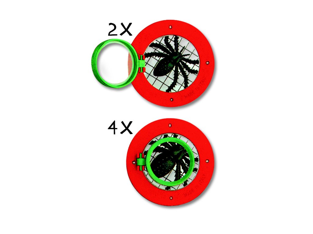 Téglik s dvojitou lupou pre pozorovanie hmyzu pre malých prieskumníkov od 5 rokov. Umožňuje sledovanie živého hmyzu vďaka ventilačným otvorom. Po preskúmaní nezabudnite hmyz pustiť späť do prírody. Téglik deti využijú tiež na pozorovanie kvetín, listov, mincí a ďalších malých predmetov. Vyrobené z ekologického ABS plastu. • Veľký priemer lupy: 45 mm • Malý priemer lupy: 32 mm • Zväčšenie 2x a 4x • Rozmery: 7 x 7 x 7,5 cmDodatočné parametre
