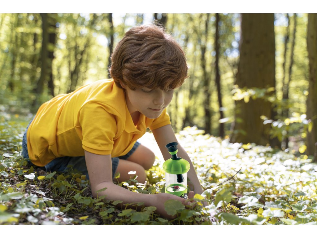 Pozorujte prírodu zblízka! Tento inteligentný téglik s mikroskopom je ideálnou pomôckou pre malých prieskumníkov od 6 rokov, ktorí radi objavujú svet okolo seba. Ponúka hneď tri možnosti pozorovania – zhora mikroskopom, zo strany aj zospodu. Umožňuje skúmať hmyz, kvetiny, listy, kamienky, mince alebo iné drobné predmety. Po pozorovaní nezabudnite živočíchy vždy vrátiť späť do prírody. Pozorovací téglik podnecuje detskú zvedavosť a rozvíja vzťah k prírode.