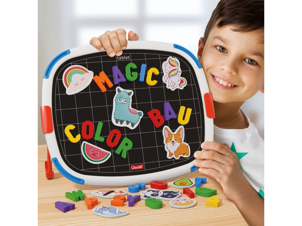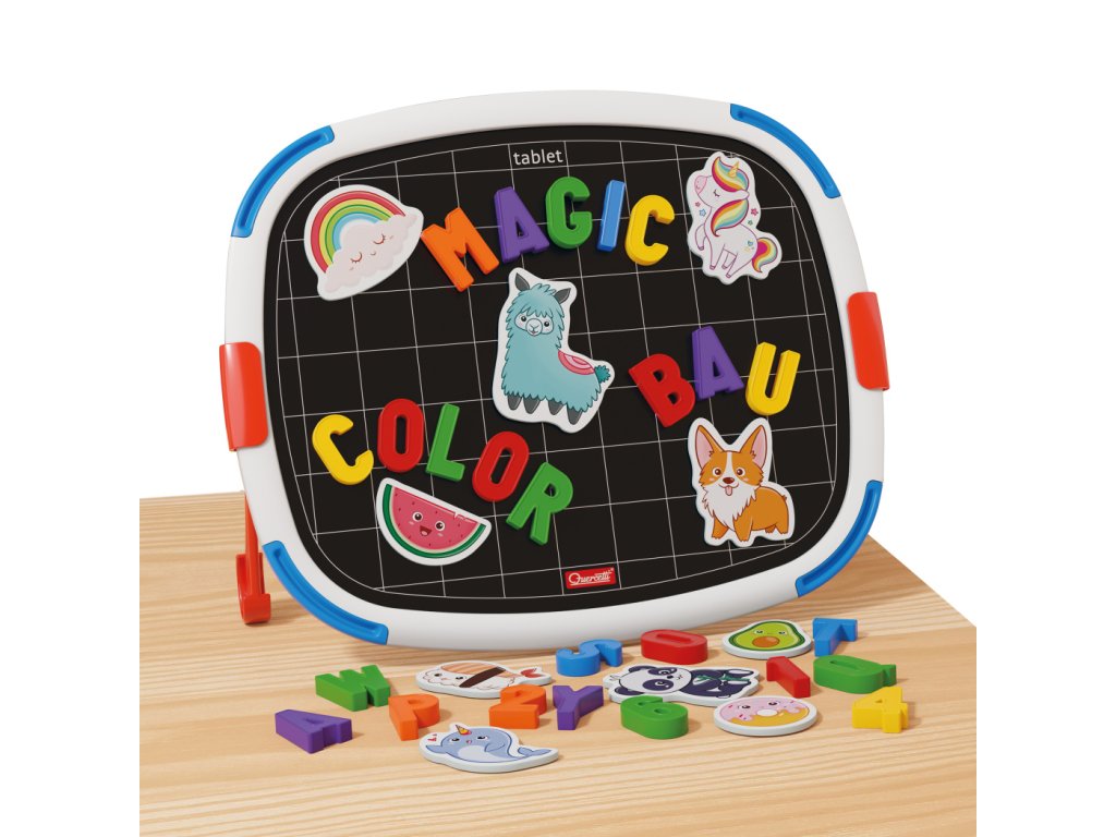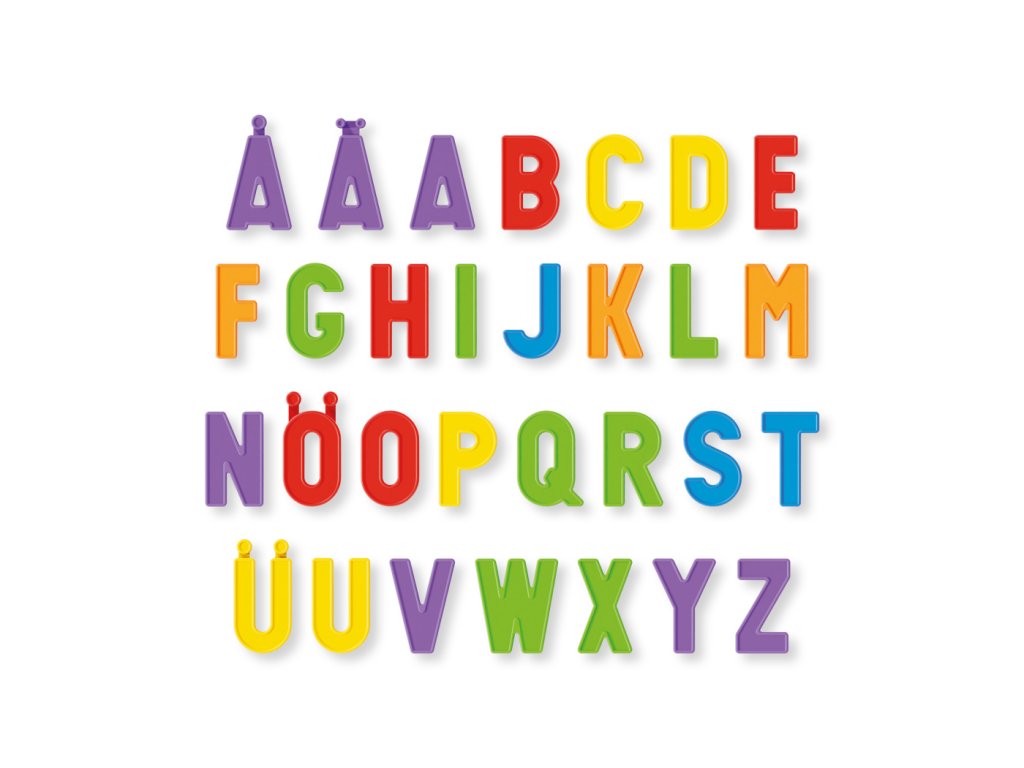 Obojstranná magnetická tabuľa je navrhnutá pre prvé zoznamovanie s abecedou, skladanie slov aj kreslenie. Bezpečná, odolná doska s gumovými ochrannými hranami a oblými rohmi je ideálna pre deti od 4 rokov.