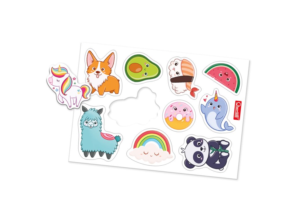 Obsah balenia: obojstranná magnetická tabuľa (biela pre písanie fixkou, čierna magnetická) • 48 magnetických písmen • 10 obrázkových magnetov • 1 stierateľná fixka + 1 hubka • 2 stojany (vertikálne alebo horizontálne použitie)