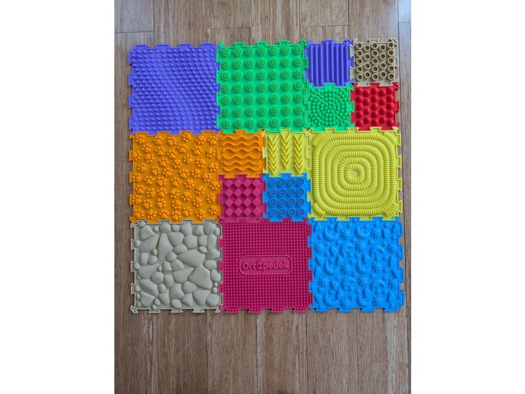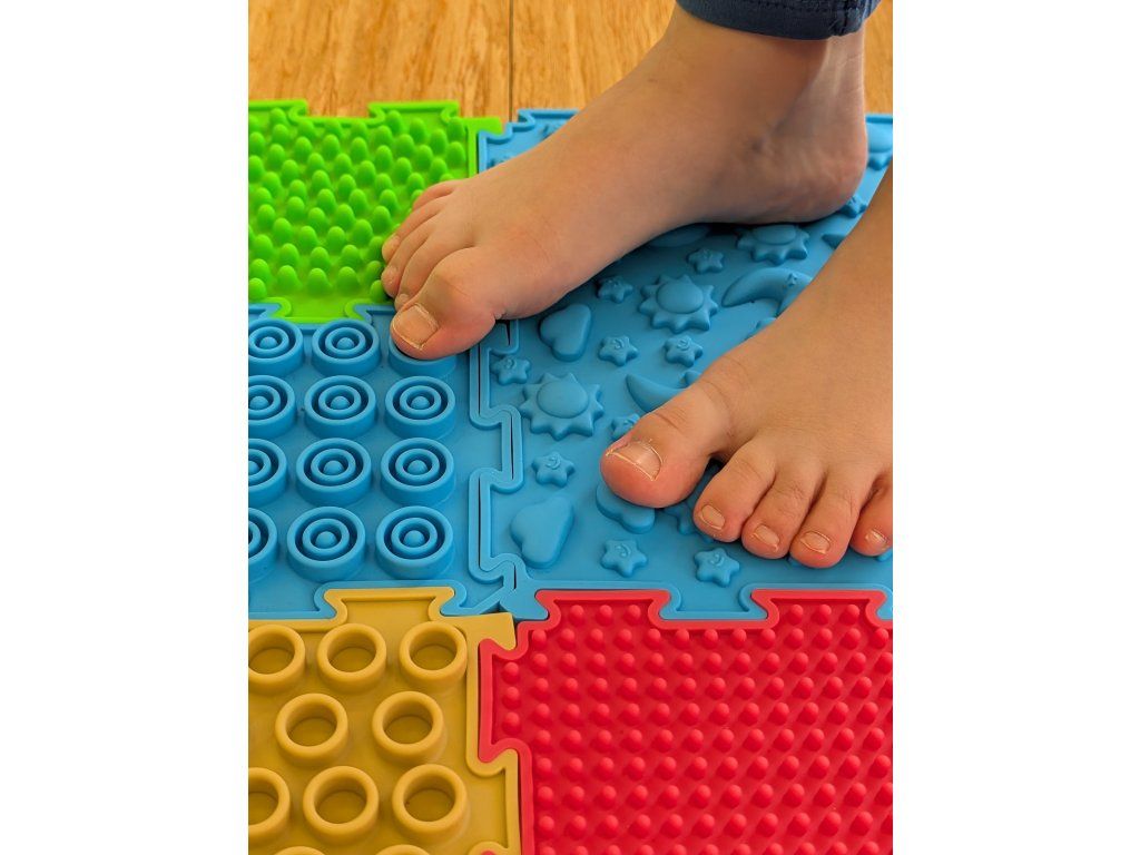Podložky Ortopedek sú navrhnuté s ohľadom na deti a ich správny vývoj. Každý diel má inú farbu a jedinečnú textúru, čo umožňuje komplexnú senzorickú stimuláciu a aktiváciu svalov chodidiel, ktoré sú zodpovedné za stabilitu a správne držanie tela. Pravidelná chôdza po podložkách jemne masíruje chodidlá, posilňuje klenbu a učí rovnováhe. Pár minút hry naboso na podložkách je rýchla a domáca cesta ku zdravším nohám, silnejším kĺbom a rovnejšiemu držaniu tela. Táto súprava obsahuje tiež mini-podložky, ktoré po spojení vytvoria štvorec s veľkosťou štandardnej senzorickej podložky. Vďaka vysokokvalitnému silikónu sú podložky odolné, bezpečné a ľahko sa čistia. Po použití stačí podložky jednoducho opláchnuť pod vlažnou vodou. Sú tak ideálne nielen pre domáce použitie, ale tiež do vzdelávacích, terapeutických a športových zariadení. Jednotlivé súpravy sú kompatibilné, takže ich môžete postupne rozširovať a prispôsobiť veku dieťaťa aj priestoru doma, v škôlke alebo herni.