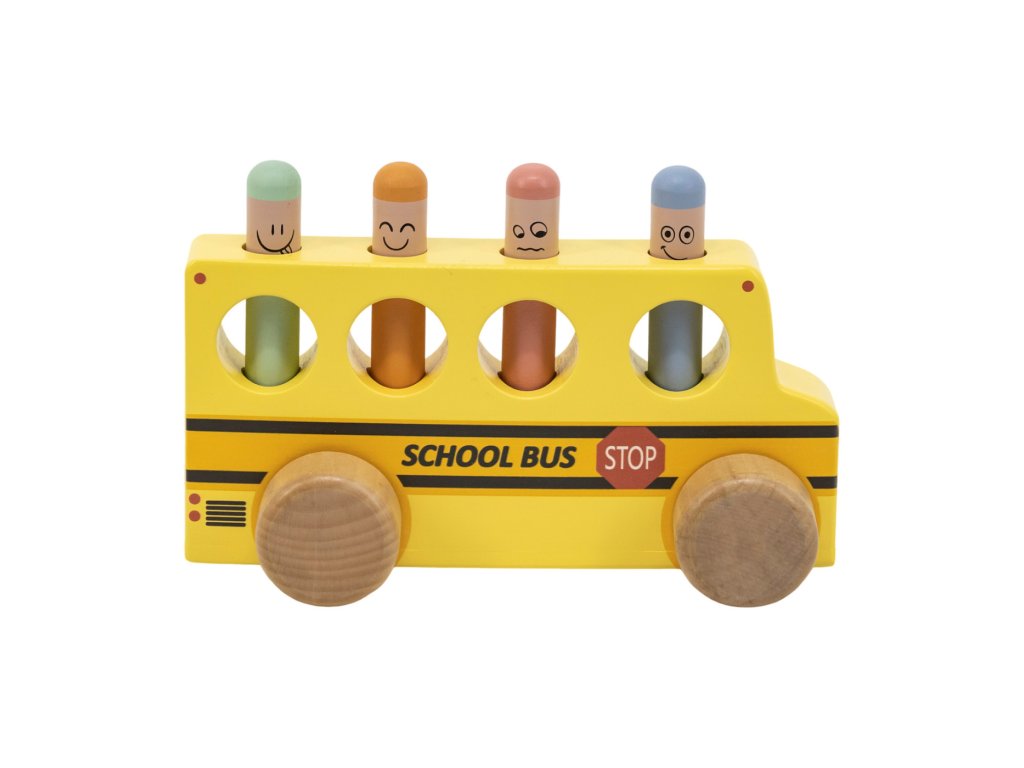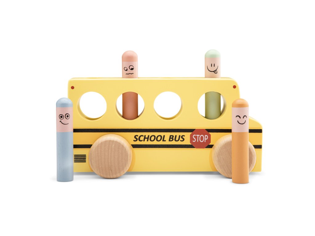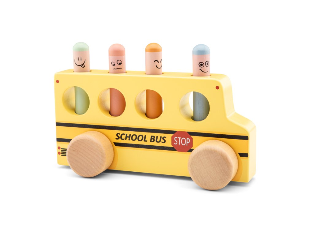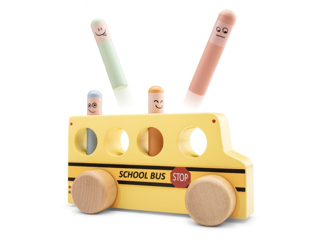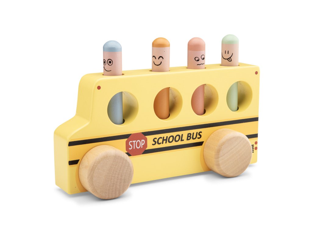 Tlačte, tískajte a hrajte sa! Veselá hračka pre deti od 2 rokov. Táto hračka bude baviť batoľatá aj o niečo staršie deti. Stačí zatlačiť na jeden z kolíčkov a ten sa vďaka pružine odrazí a vyskočí zo svojho miesta von. Sledujte, ako kolíčky vyskakujú a snažte sa ich chytiť, keď sa vznášajú vo vzduchu. Deti sa tak učia porozumieť príčine a následku. Navyše hračka napomáha batoľatám rozvíjať jemnú motoriku a koordináciu očí a rúk. Rozmery hračky sú 18,5 x 7 x 9 cm. Vyrobené zo 100 % certifikovaného dreva FSC.
