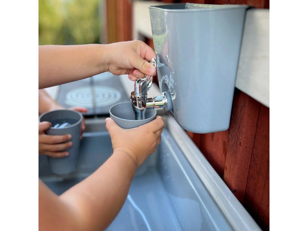 Domček Roba s piknikovým stolčekom a kuchyňou je ideálny pre deti od 18 mesiacov. Deti môžu variť a grilovať ako skutoční majstri v kuchynke, ktorá je vybavená dvomi hracími vaničkami, otočnými gombíkmi a nádržkou na vodu s kohútikom. Pod doskami s grilom a varnou doskou sú schované 2 hracie plastové vaničky, ktoré môžu slúžiť ako drez. Realistické prvky deťom zaručia autentický herný zážitok.