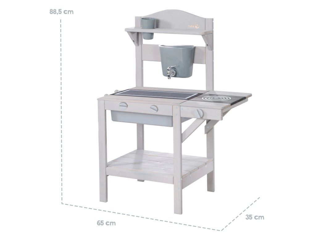 Vonkajšia kuchynka v sivom vyhotovení sa skvelo hodí na záhradu, terasu alebo balkón. Je vhodná pre deti od 18 mesiacov a možno ju využívať ako vonku, tak i v interiéri. Vďaka realistickým prvkom sa deti môžu hrať na varenie, objavovať nové roly a užívať si spoločné chvíle s kamarátmi. Kuchynka je vybavená bohatým príslušenstvom, ktoré podporuje nápaditú hru. Nechýba odnímateľná varná doska, hrniec s pokrievkou a obracačka, tri otočné gombíky, vyberateľná vanička, nádoba na vodu s kohútikom, hrnček ani dva háčiky na zavesenie kuchynského náčinia.