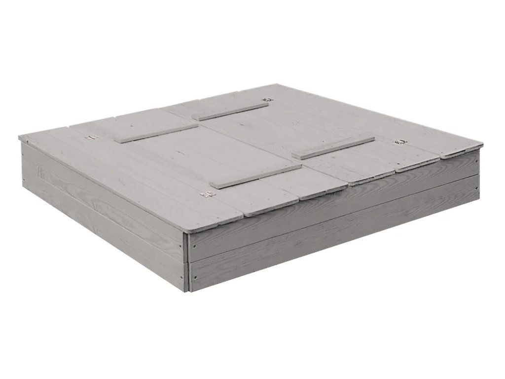 Praktické skladacie pieskovisko ponúka šikovné riešenie 2v1. Po otvorení poskytne dostatok priestoru pre hru, po zatvorení chráni piesok pred nečistotami i zvieratami. Veko možno ľahko premeniť na dve pohodlné lavice s operadlami, ktoré deťom spríjemnia hranie aj odpočinok. Pieskovisko je vhodné pre deti už od 12 mesiacov. Masívne drevo so sivou lazúrou pochádza z udržateľných zdrojov. Je odolné voči poveternostným vplyvom, stabilné a vhodné pre vonkajšie použitie. Zaoblené hrany a hladký povrch zaisťujú bezpečnú hru bez rizika poranenia. Pieskovisko spĺňa bezpečnostnú normu, použité materiály sú testované na škodliviny.