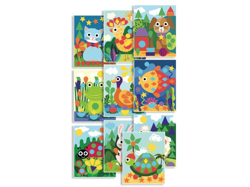 Kreatívna voľnočasová aktivita pre deti od 3 rokov. Deti si pomocou samolepiacich tvarov dotvoria 10 predtlačených obrázkov s veselými motívmi zvieratiek. Nie je to ale tak jednoduché, je treba spoznať, ktorá samolepka kam patrí. Táto súprava samolepiek je skvelým darčekom, ktorý pomáha deťom rozvíjať ich motorické zručnosti a priestorové vnímanie. Vhodné tiež na precvičovanie spoznávania tvarov a farieb. Obsah balenia: 10 tlačených obrázkov (21 x 17 cm), 5 hárkov samolepiek. Rozmery balenia: 3 x 21,5 x 1,5 cm.