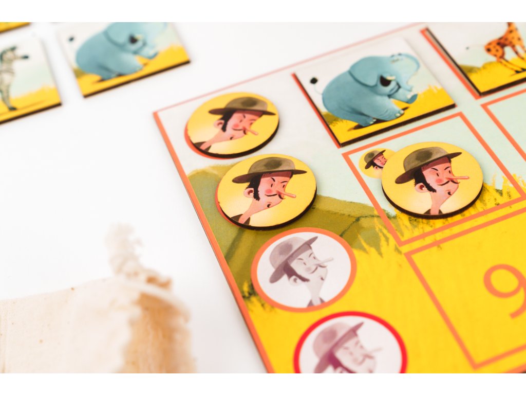 Obsah balenia: obojstranná herná doska (pre jednoduchšiu a náročnejšiu verziu hry), 16 zvieracích dielikov, 16 žetónov s kľúčom, 8 žetónov pytliakov, bavlnené vrecúško.