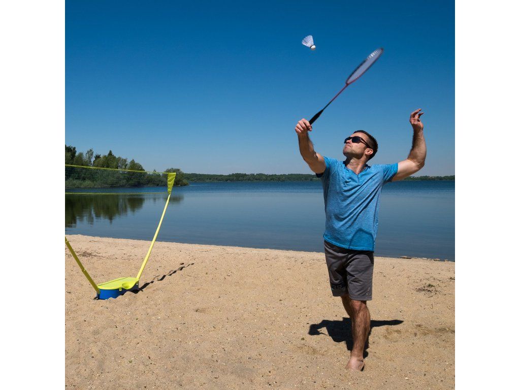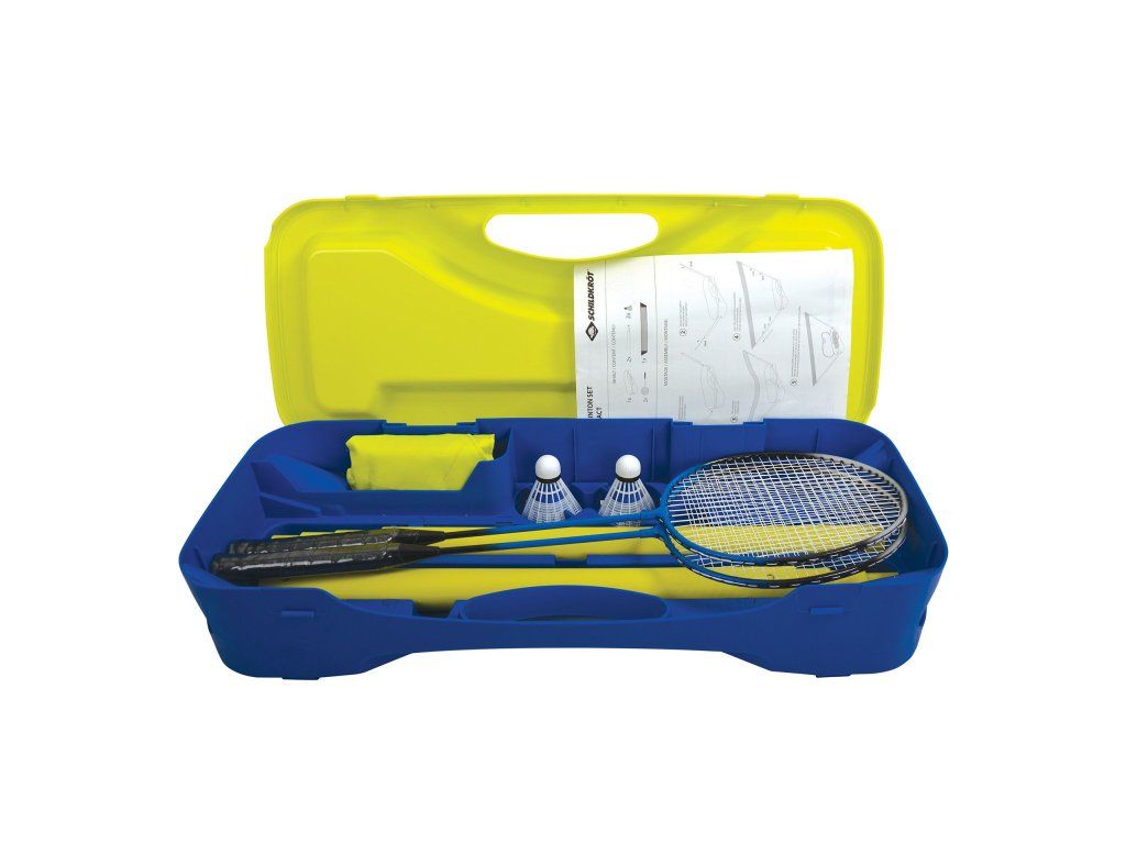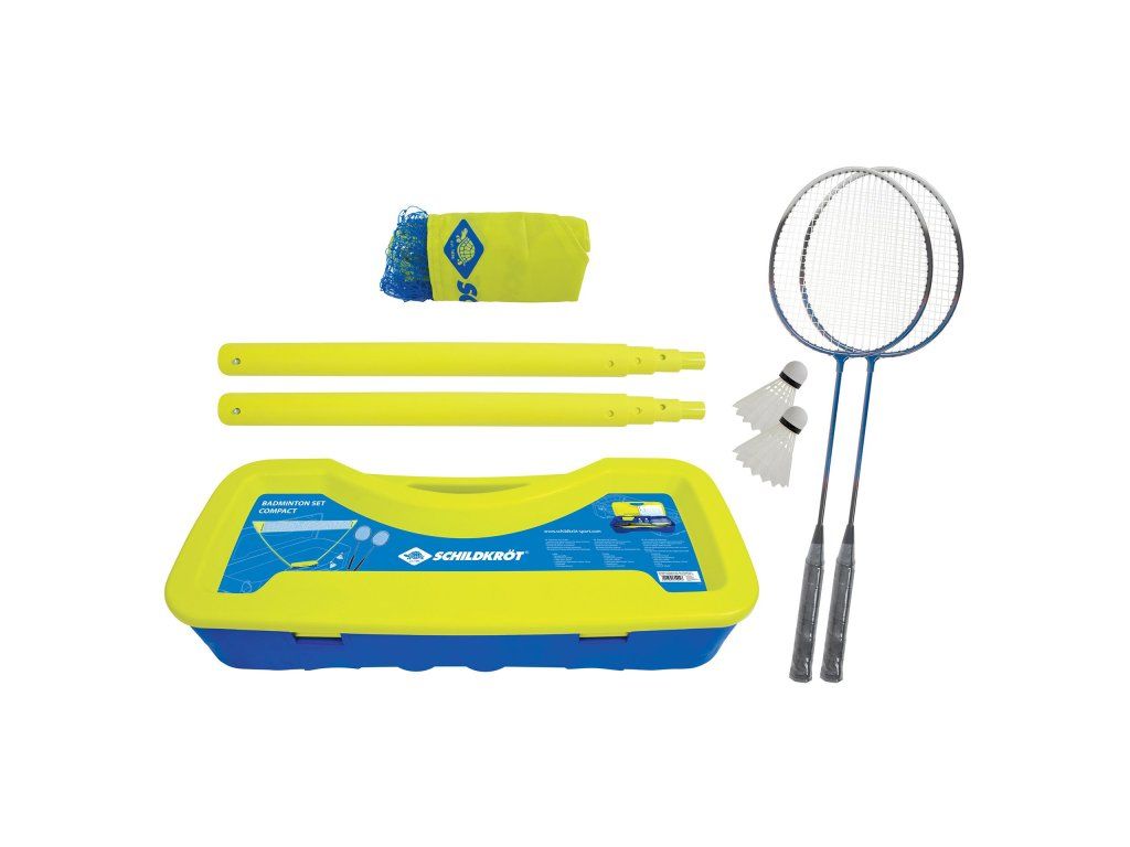 Bedmintonová súprava Schildkröt Compact je inovatívna kompletná bedmintonová súprava pre 2 hráčov. Súprava sa skladá z 2 rakiet v dobrej rekreačnej kvalite z kalenej ocele so zváraným T-spojom, 2 loptičiek, inovatívnej siete (2,95 x 1,55 m) s robustnými plastovými teleskopickými tyčami, to všetko je zabalené v praktickom plastovom puzdre, ktoré slúži aj ako stojan na sieť. Rýchla a ľahká montáž, nie je nutné žiadne kotvenie k podlahe. Silné plastové tyče v tvare V tejto siete sú v plastovom prepravnom puzdre. Toto puzdro možno umiestniť kamkoľvek a pre zvýšenie hmotnosti a stability by malo byť naplnené kameňmi alebo pieskom. Sieť možno postaviť kdekoľvek, vrátane tvrdých povrchov, ako sú ihriská, príjazdové cesty, telocvičňa alebo iná hala. Dodávané rakety a loptičky majú veľmi dobrú základnú kvalitu. Rozmery balenia: 71 x 30,5 x 13 cmDodatočné parametre