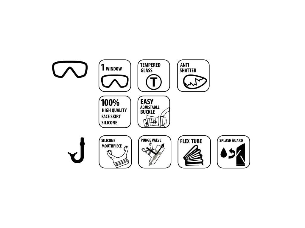 Detská súprava na šnorchlovanie Barbados skladá z malej silikónovej potápačskej masky a šnorchla. Zaujme svojím vynikajúcim spracovaním a vysokokvalitným silikónovým materiálom. Ohybná trubica s pohyblivým držiakom Easy Clip Holder sa prispôsobí prakticky akémukoľvek tvaru hlavy a rôznym veľkostiam. V hornej časti je nápadný neónovo oranžový ochranný kryt proti striekajúcej vode. Okuliare sú vyrobené z bezpečnostného skla pre lepšiu viditeľnosť. Šírku pásika možno ľahko nastaviť pomocou dvoch bočných spôn.Dodatočné parametre