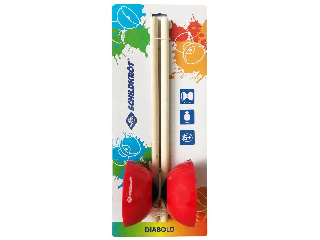 Diabolo je klasická hra, zvlášť obľúbená u detí a tínedžerov. Toto diabolo, vyrobené z červeného plastu je ideálne pre deti a začiatočníkov. Samotné Diabolo má priemer 10 cm, šírku 11 cm, a váži 110 gramov. Súprava obsahuje: diabolo, 2 drevené tyče a povrázok, všetko zabalené v sieťovanej taške, ktorá slúži pre uskladnenie a prepravu. Súčasťou balenia je tiež návod a kompletný stručný sprievodca s dôležitými tipmi a trikmi, vďaka ktorým sú začiatky s diabolom skutočne ľahké.Dodatočné parametre