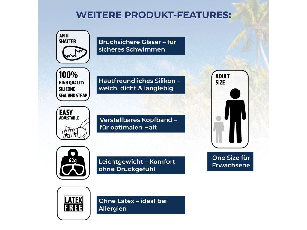 Plavecké okuliare Schildkröt Java sú ideálne pre všetkých, ktorí hľadajú pohodlie, široké zorné pole a bezpečné uchytenie pri plávaní, triatlone alebo vodných športoch. Vďaka zakriveným polykarbonátovým šošovkám s panoramatickým výhľadom 180° máte perfektnú viditeľnosť ako v otvorenej vode, tak v bazéne. Okuliare sú vybavené ochranou proti zahmlievaniu a UV ochranou, čo zaisťuje jasné videnie aj pri slnečnom počasí. Mäkké silikónové tesnenie sa skvelo prispôsobí tvaru tváre, bráni vniknutiu vody a minimalizuje tlak. Extra široký silikónový pásik s klipmi „Easy-Adjust“ vám umožní ľahko prispôsobiť uchytenie pre maximálne pohodlie, aj na dlhých vzdialenostiach. Okrem toho je súčasťou balenia praktické puzdro na zips, ktoré chráni okuliare pred poškriabaním a uľahčuje skladovanie okuliarov v taške alebo batohu.Dodatočné parametre