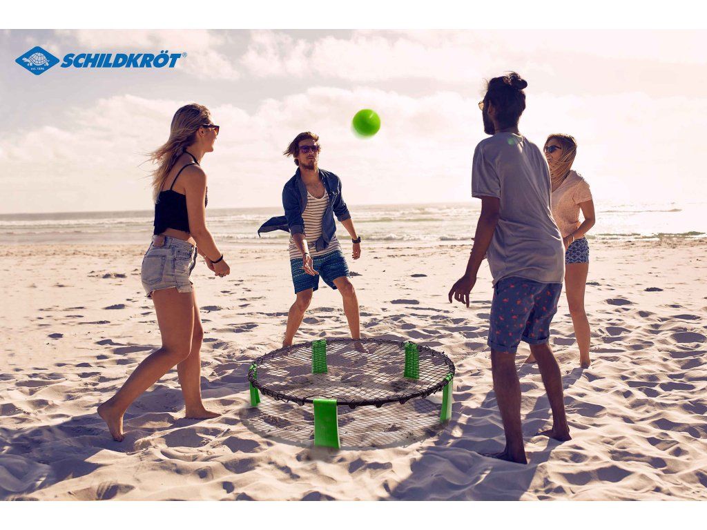 Roundnet je nový zábavný šport pre deti aj dospelých. Vďaka tejto súprave od značky Schildkröt môžete zažiť zábavné chvíle s priateľmi a rodinou, na pláži, na záhrade alebo v parku. Súprava obsahuje všetko, čo potrebujete, aby ste mohli okamžite začať hru: sieť na roundnet (O 90 cm, výška cca 20 cm), 1 tréningovú loptičku (O 11 cm), 2 súťažné loptičky (O 9 cm), pumpičku na loptičky s ihlou a sieťovú tašku pre uloženie a prepravu. Loptičky nafukujte maximálne na 0,5 baru. V Roundnete súťažia dva tímy po dvoch hráčoch. Hracia plocha je 360 stupňov okolo siete, čo znamená, že hra nie je obmedzená na jednu stranu. Hra je technicky podobná volejbalu. Každý tím má až tri prihrávky na vrátenie loptičky súperovi. Pokiaľ jeden tím loptičku nechytil alebo nevrátil, druhý tím získa bod. Hra končí, keď jeden tím dosiahne 21 bodov.Dodatočné parametre