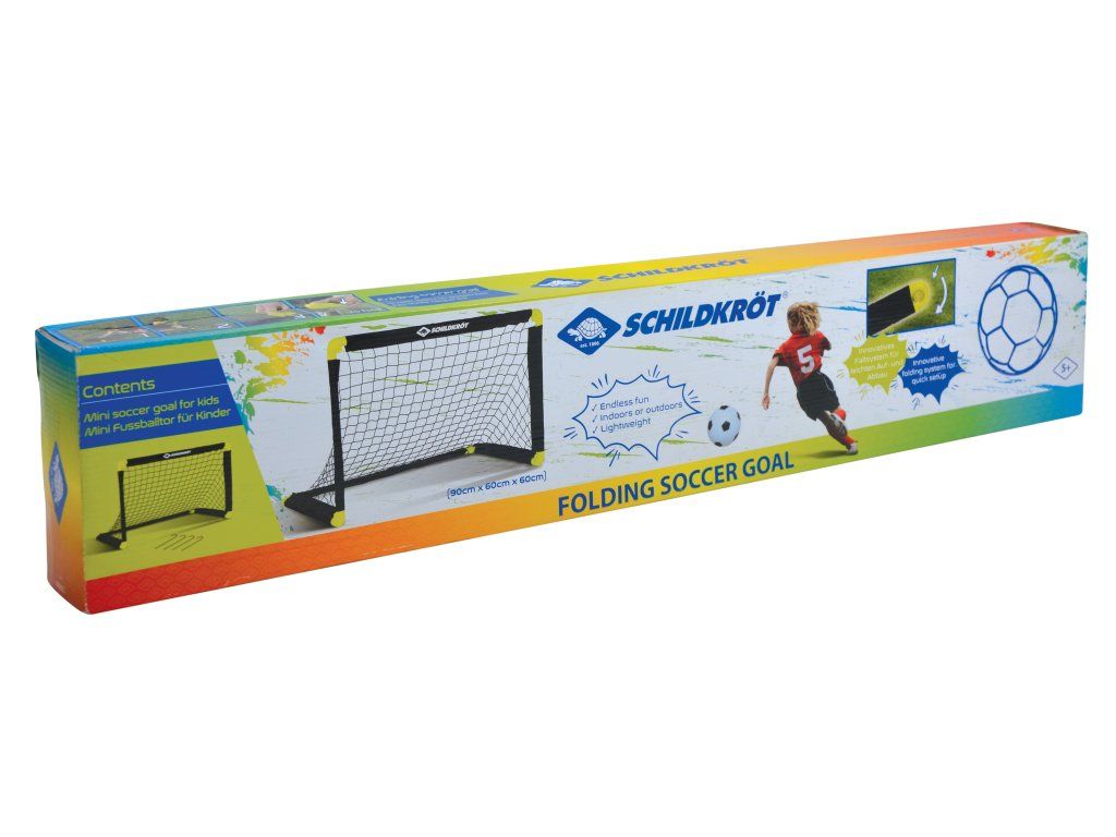 Skladacia futbalová bránka od značky Schildkröt vám umožní zahrať si futbal kdekoľvek a kedykoľvek. Váži iba 900 g a s rozmermi 90 × 60 × 60 cm je ideálna pre rôzne loptové športy ako futbal, hádzanú alebo hokej. Vďaka robustnému kovovému rámu je bránka stabilná a odolná, pričom jej rýchla montáž nevyžaduje žiadne nástroje, takže ju ľahko zostavíte počas niekoľkých minút. Bezpečné ukotvenie pomocou 4 kovových kolíkov zaistí stabilitu pri vetre alebo pri silných strelách. Vďaka skladacej konštrukcii je ľahko prenosná a po použití sa dá kompaktne uložiť, čo je ideálne pre rodiny s obmedzeným priestorom. Skladacia bránka je perfektná pre záhradné hry, športové tréningy alebo narodeninové oslavy. Skvele sa hodí pre deti, tínedžerov aj dospelých, ktorí si chcú užiť futbal alebo iné loptové hry s rodinou a priateľmi. Vďaka zaobleným hranám je bránka bezpečná aj pre deti, už od 3 rokov. VAROVANIE: Montáž môžu robiť iba dospelé osoby!Dodatočné parametre