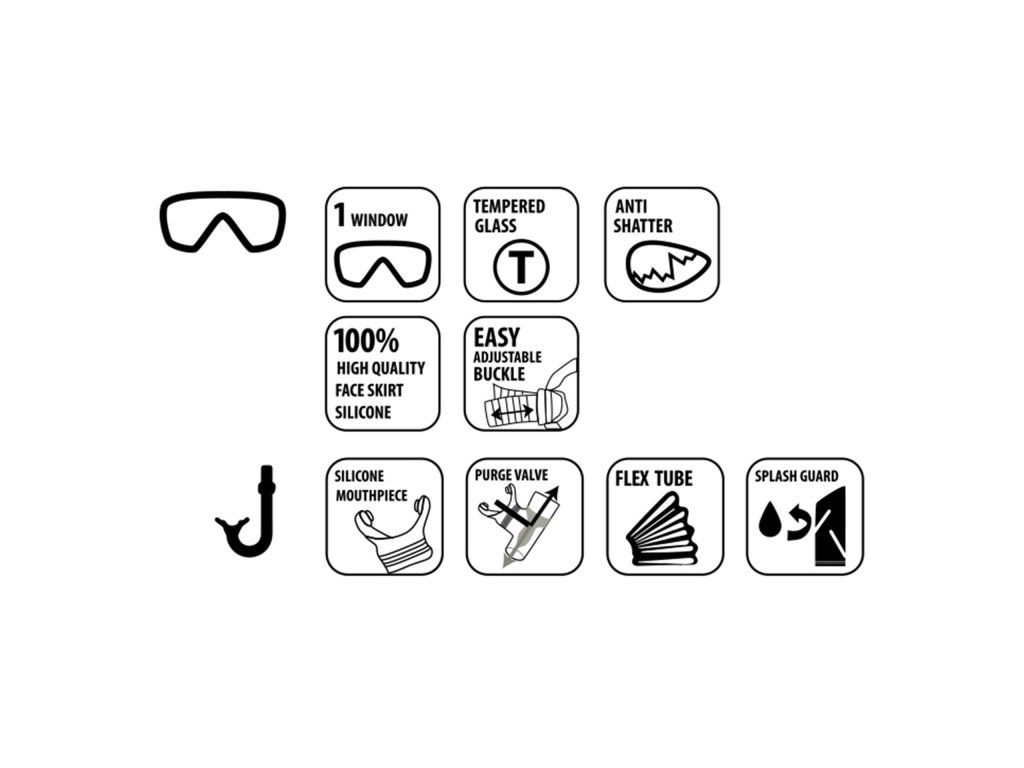 Šnorchlovacia súprava Fiji od značky Schildkröt je ideálne vybavenie pre chvíle s rodinou a priateľmi, cez víkend či na dovolenke. Súprava zaujme svojím vysokokvalitným silikónovým materiálom. Trubica s pohyblivým držiakom Easy Clip Holder sa prispôsobí prakticky akémukoľvek tvaru hlavy a rôznym veľkostiam. V hornej časti je nápadný neónovo oranžový ochranný kryt proti striekajúcej vode. Vďaka jednovrstvovému bezpečnostnému sklu poskytujú mimoriadne široké zorné pole, ktoré umožňuje skvelý prehľad pod hladinou. Maska z mäkkého silikónu sa dokonale prispôsobí tvári a zaručuje spoľahlivé utesnenie. Silikónový pásik zaisťuje pohodlné a bezpečné uchytenie, zatiaľ čo praktický systém spôn umožňuje ľahké nastavenie dĺžky pásika podľa potreby. Ideálna voľba pre nadšencov potápania: pohodlná, odolná a bezpečná maska pre vaše podmorské dobrodružstvá!Dodatočné parametre