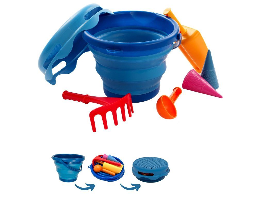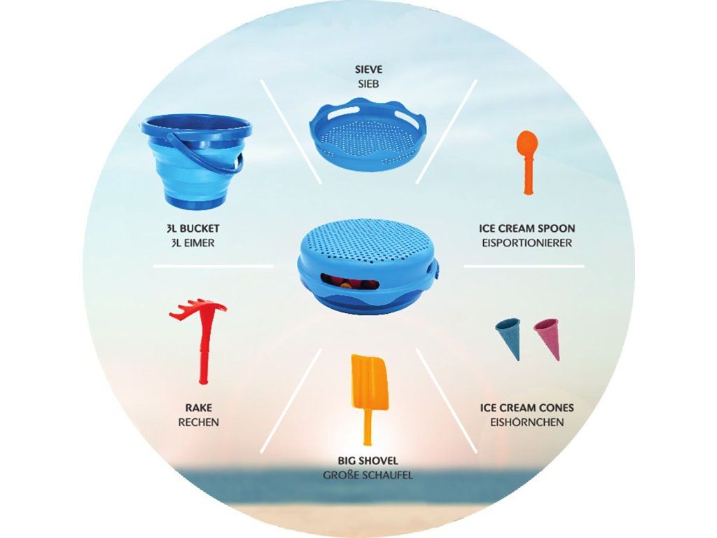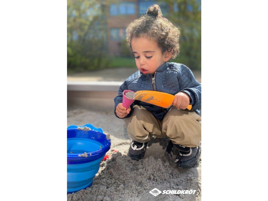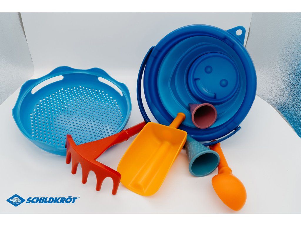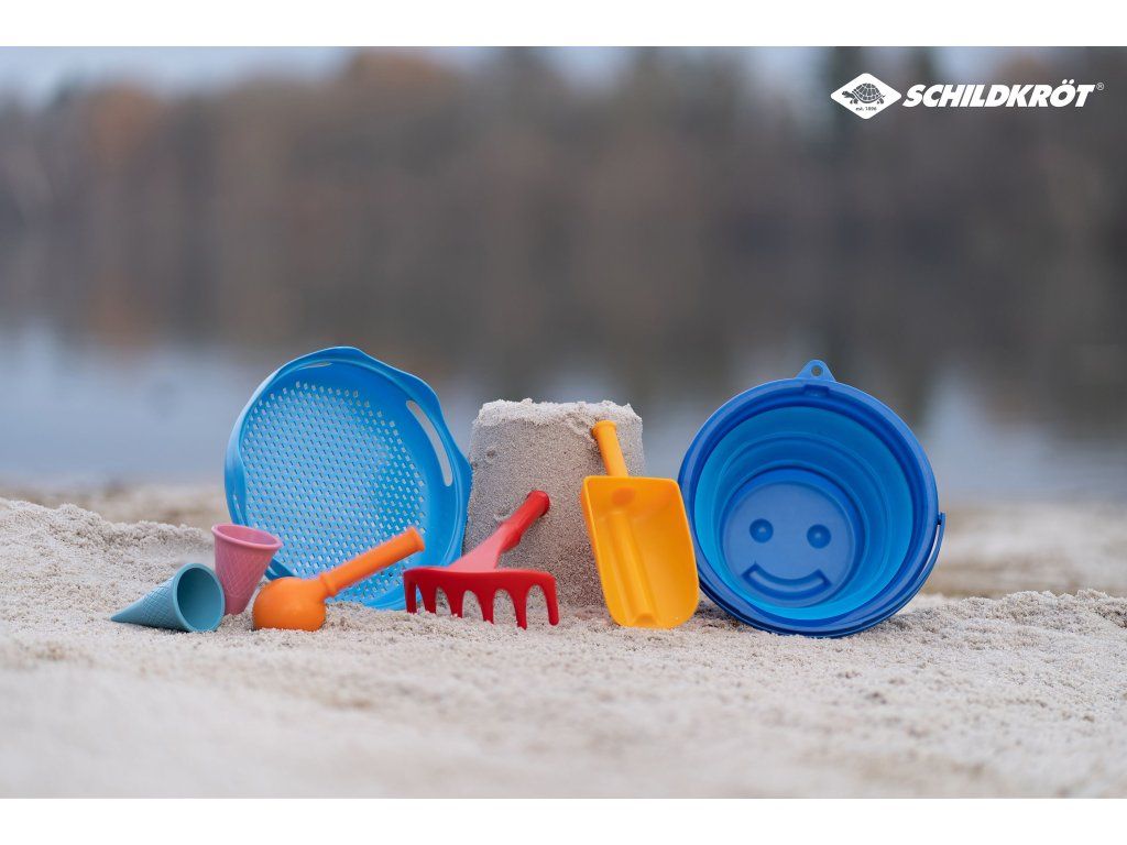 Sedemdielna súprava hračiek do piesku Schildkröt ponúka funkčnosť a praktické riešenie pre všetkých rodičov, ktorí hľadajú priestorovo úsporné hračky pre svoje deti. Súprava obsahuje trojlitrové skladacie vedierko a šesť ďalších hračiek do piesku, ktoré umožnia deťom hrabanie, tvarovanie, preosievanie a ďalšie kreatívne hry. Vďaka kompaktným rozmerom (priemer: 22 cm, výška: 8,6 cm) je súprava ideálna na cestovanie, kempovanie alebo hru na pláži. Vojde sa ľahko do tašky, kufra alebo kočíka, čo z nej činí perfektného spoločníka na dovolenku. Kvalitné biologicky neškodné materiály zaisťujú dlhú životnosť a šetrnosť k životnému prostrediu. Patentovaný dizajn zaručuje odolnosť a je navrhnutý tak, aby ho mohli používať deti niekoľko generácií. Obsah balenia: trojlitrové skladacie vedierko, naberačka na zmrzlinu, sitko, veľká lyžica, hrabličky, dve bábovky v tvare kornútikov.Dodatočné parametre