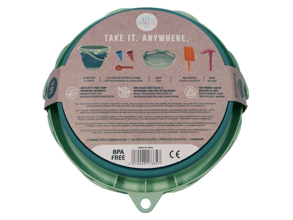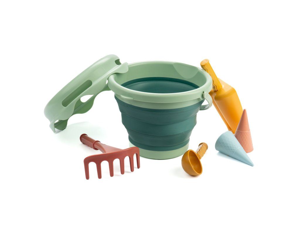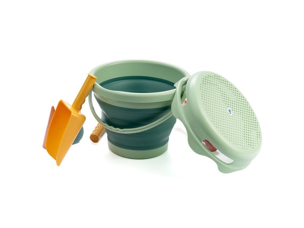 Schildkröt – súprava hračiek do piesku – skladacie vedierko zelené – 7 ks