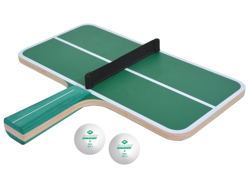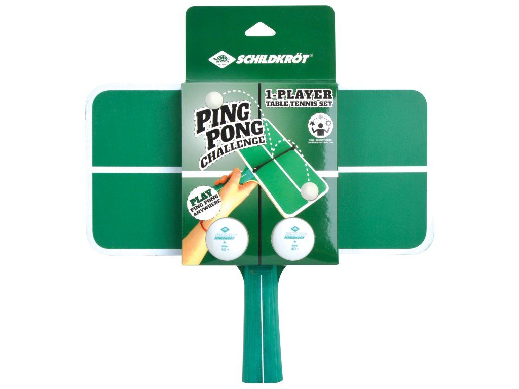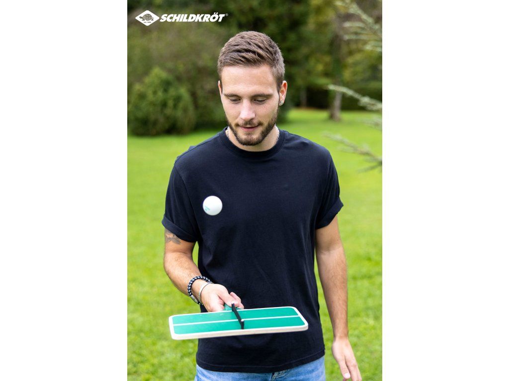 Inovatívna hra stolného tenisu od značky Schildkröt je ideálny začiatok pre budúcich profesionálov vo stolnom tenise. Táto súprava sa skladá z dvoch loptičiek a rakety v tvare malého pingpongového stolu so sieťou (30 x 15 cm). Otáčaním zápästia zľava doprava sa hráč snaží prinútiť pingpongovú loptičku, aby preskočila z jednej polovice stola na druhú. Táto hra pre jedného hráča vyžaduje zručnosť, sústredenie, koordináciu a pohotovosť.Dodatočné parametre
