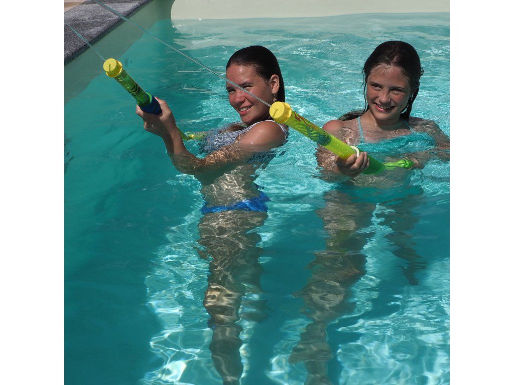 S bláznivou vodnou pištoľou Schildkröt si užijú množstvo zábavy deti aj dospelí. Vďaka objemu 0,4 litra a dostrelu až 15 metrov môžete ľahko zmáčať svojho súpera. Pištoľ má dĺžku 66 cm a je vyrobená z robustného plastového puzdra s priemerom 3,5 cm, ktoré je vybavené dvomi tesneniami pre vysoký tlak a dlhý dostrel. Mäkké, protišmykové penové rukoväte skvele padnú do ruky a zaručia vám bezpečné ovládanie. Naplnenie pištole je rýchle a ľahké, stačí ju ponoriť do vody a nasať. Pištoľ je vhodná aj pre slanú vodu a má kvalitné vyhotovenie, ktoré zaručuje dlhú životnosť. Určené pre deti od 5 rokov.Dodatočné parametre