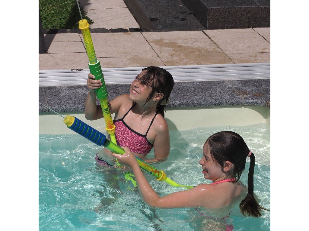 S bláznivou vodnou pištoľou Schildkröt si užijú množstvo zábavy deti aj dospelí. Vďaka objemu 0,4 litra a dostrelu až 15 metrov môžete ľahko zmáčať svojho súpera. Pištoľ má dĺžku 66 cm a je vyrobená z robustného plastového puzdra s priemerom 3,5 cm, ktoré je vybavené dvomi tesneniami pre vysoký tlak a dlhý dostrel. Mäkké, protišmykové penové rukoväte skvele padnú do ruky a zaručia vám bezpečné ovládanie. Naplnenie pištole je rýchle a ľahké, stačí ju ponoriť do vody a nasať. Pištoľ je vhodná aj pre slanú vodu a má kvalitné vyhotovenie, ktoré zaručuje dlhú životnosť. Určené pre deti od 5 rokov.Dodatočné parametre