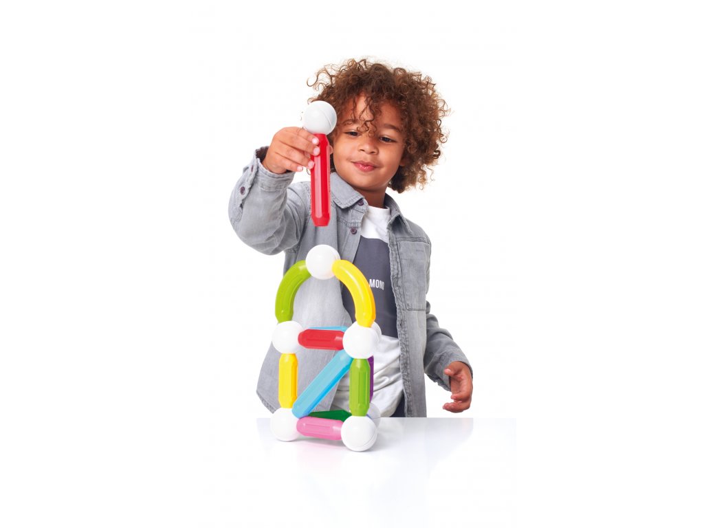 Belgická magnetická stavebnica predstavuje ideálnu hračku pre malé deti od 1 roka. Balenie Start Plus obsahuje 6 veľkých tyčiek (dlhé 12cm), 12 stredných tyčiek, 4 zatáčky a 8 spojovacích guličiek. Priťahovanie a odpudzovanie magnetov očarí deti na ich ceste za poznaním. Malé deti vytvoria jednoduché 2D tvary. Staršie deti môžu budovať veže, mosty a daľšie super veľké stavby. Jednotlivé magnetické diely sa jednoducho spájajú jedným cvaknutím. Všetky diely je možné kombinovať so všetkými stavebnicami SmartMax. Súčasťou balenia je i brožúrka s ukážkami, čo všetko je možné z tejto sady postaviť.