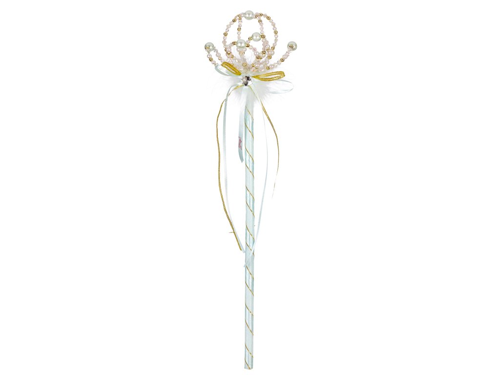 Čarovná palička pre malé princezné a víly je potiahnutá mätovo zeleným saténom a zdobená perličkami v bielej, zlatej a mätovej farbe. Na vršku má jemnú mašličku, tyl a trblietavý kryštál. Je ľahká, dobre sa drží a skvelo doplní každý kostým. Ideálna ako darček pre dievčatká od 3 rokov.