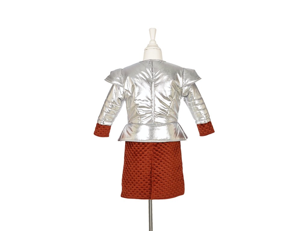 Skvelo spracovaný gladiátorsky kostým má krásnu striebornú zbroj s obrázkom čierneho draka na hrudi. Predĺžená spodná časť je z textúrovanej látky. Kostým je veľmi dobre spracovaný, každý detail je starostlivo premyslený. Látky, ktoré boli použité, sú príjemné na dotyk a zaisťujú pohodlie počas nosenia. Kostým je ideálny pre rôzne tematické večierky, narodeninové oslavy alebo na každodenné hranie. Tento kostým môže byť tiež skvelým darčekom, ktorý poteší každého malého chlapca.