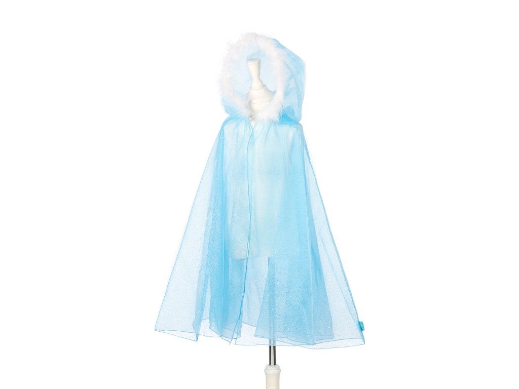 Kúzelný plášť pre dievčatá je vyrobený z jemného, trblietavého modrého tylu v dvoch vrstvách, čo mu dodáva vzdušný a priesvitný vzhľad. Kapucňa je ozdobená bielou kožušinou, a plášť sa zapína pri krku na gombík a pútko. Plášť je pohodlný a hodí sa ku kostýmu snehovej kráľovnej, ľadovej princeznej alebo zimnej elfky. Skvelý doplnok pre tematický večierok, alebo ako samostatný kostým. Perfektný darček pre malé princezné od 3 rokov.