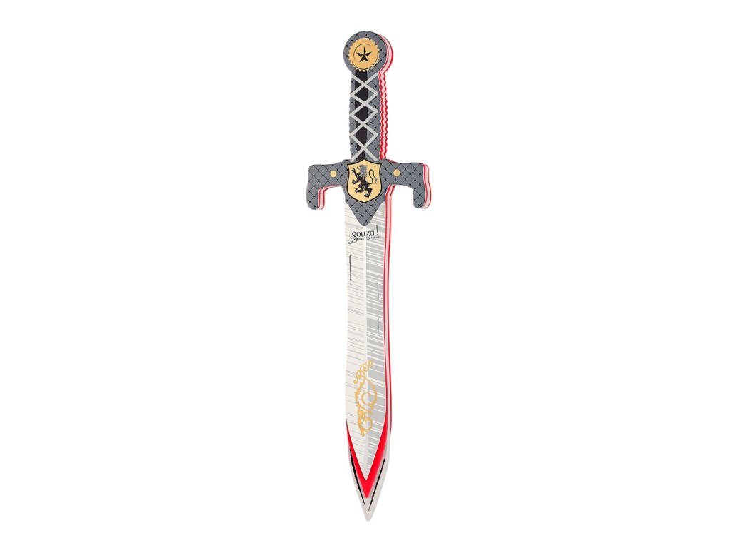 Tento rytiersky meč je vyrobený z ľahkej a odolnej peny EVA, čo zaisťuje bezpečné hranie aj ľahké zaobchádzanie pre deti od 3 rokov. Meč zdobí čierny erb mýtického stvorenia gryfa. Má dobre tvarovanú rukoväť, ktorá padne deťom do ruky. Vďaka svojej ľahkosti je ideálny pre malých rytierov na dobrodružné výpravy. Perfektný doplnok k rytierskemu kostýmu – skvelo sa hodí na karneval, divadelné predstavenie alebo hru doma i vonku.