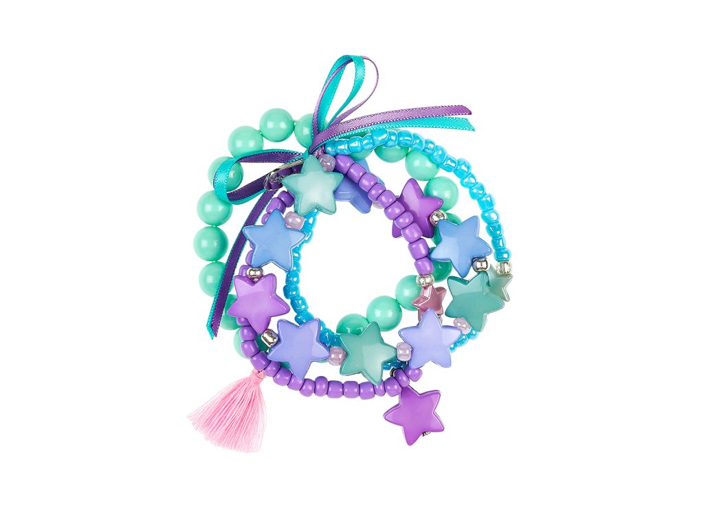 Súprava štyroch detských náramkov poteší každú malú parádnicu, ktorá má rada hravé a farebné doplnky. Náramky sú navrhnuté tak, aby sa ľahko nosili, boli pohodlné a zároveň vyzerali pôvabne na malom zápästí. Veselé farby skvelo doplnia každodenné oblečenie aj slávnostné šaty. V súprave sa nachádzajú štyri rôzne zdobené náramky, dva sú doplnené malým príveskom. Koráliky sú navlečené na pružnej gumičke, ktorá sa ľahko prispôsobí detskému zápästiu a umožňuje pohodlné nasadenie bez zapínania.