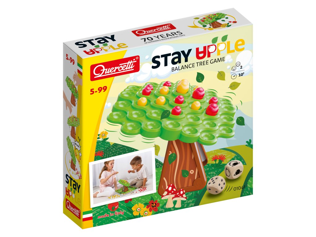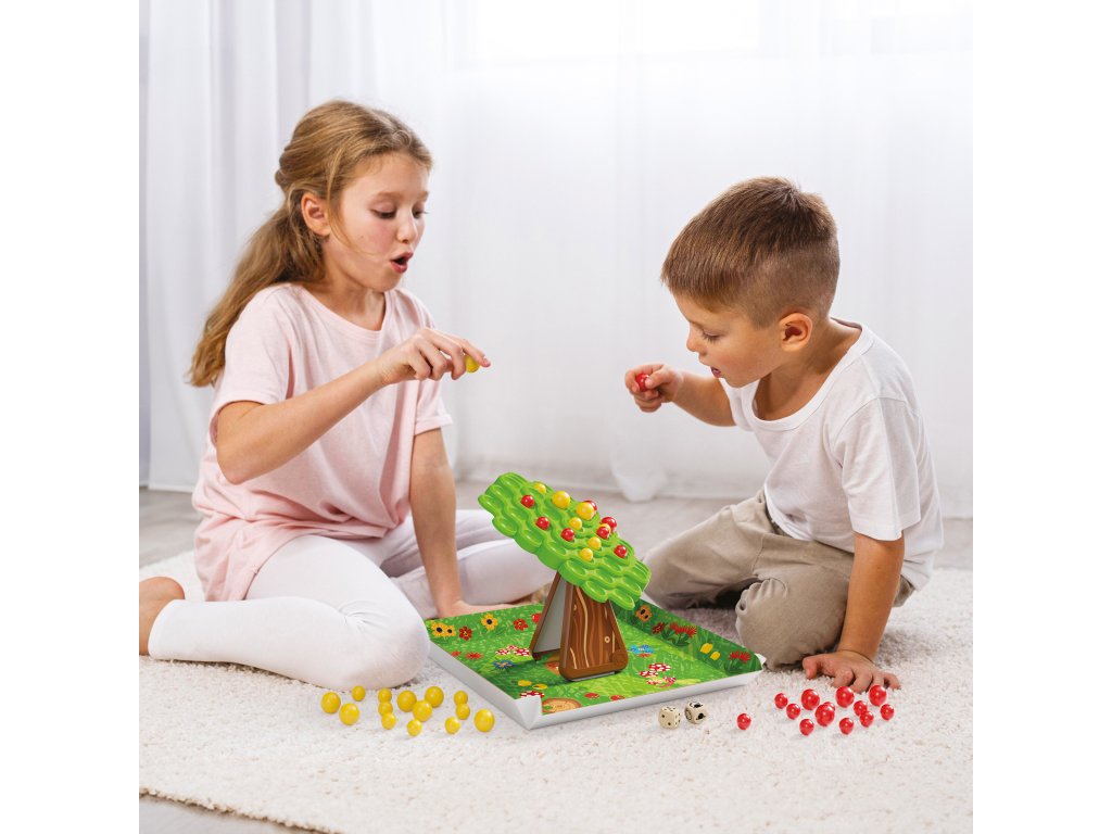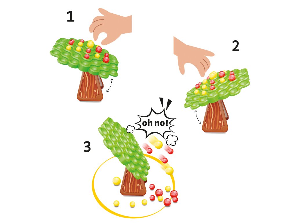 Táto balančná hra pre 2 hráčov od 5 rokov je zábavnou výzvou, ktorá rozvíja motoriku, logické myslenie a pochopenie zákonov rovnováhy. Každý z hráčov sa ocitne v role záhradníka, ktorého úlohou je starostlivo umiestniť červené a žlté jablká na korunu kníšuceho sa stromu bez toho, aby ho prevrátili. Každý pohyb vyžaduje sústredenie a presnosť, pretože vaše rozhodnutie môže ovplyvniť stabilitu stromu. Hra rozvíja motorické zručnosti a učí deti vnímať následky svojich rozhodnutí. Deti si s touto hrou užijú množstvo smiechu, napätia a súťaženia. Rozmery balenia sú 26,3 x 5,6 x 26,2 cm.Dodatočné parametre