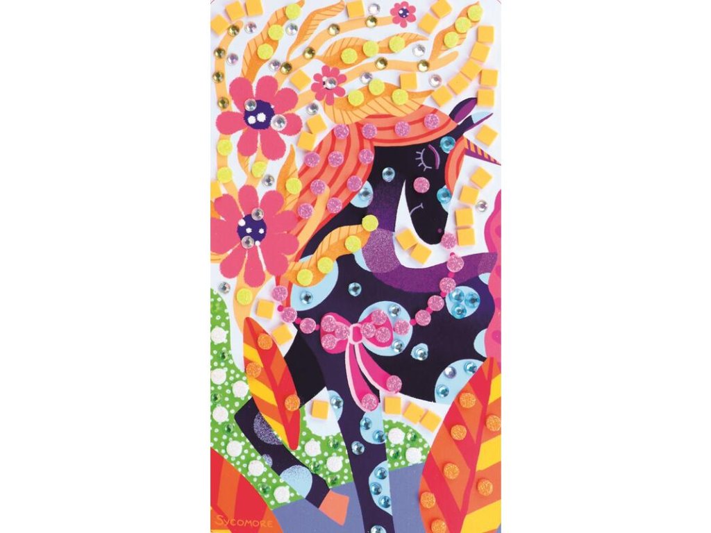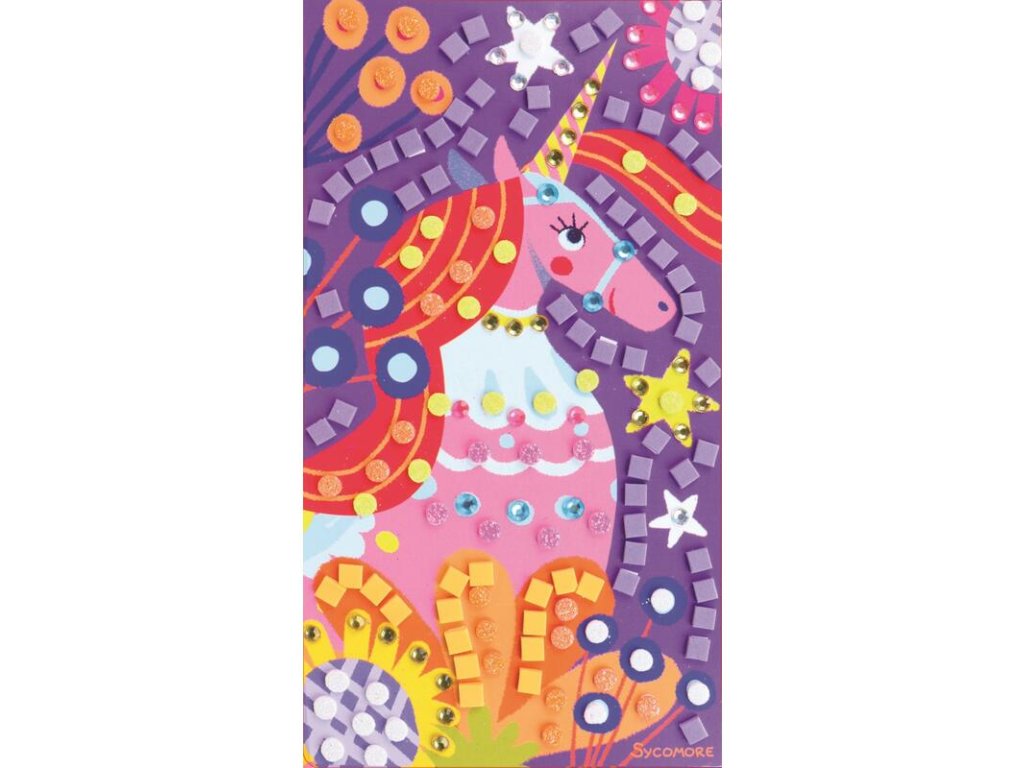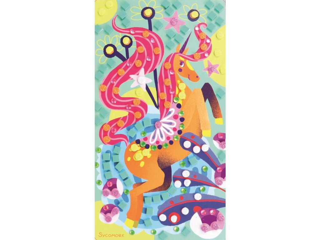Vytvorte si žiarivé umelecké dielo! Táto kreatívna súprava umožní deťom od 5 rokov ozdobiť tri krásne obrázky pomocou samolepiacich kamienkov a trblietavých mozaikových dielikov. Každý obrázok sa po dokončení rozžiari farbami a leskom a možno ho ľahko zavesiť na priehľadný záves. Skvelý spôsob, ako rozvíjať jemnú motoriku, trpezlivosť a cit pre farby! Súprava obsahuje: 3 obrázky na pevnom kartóne (22 × 12 cm), 500 samolepiacich kamienkov a trblietavých dielikov, 3 priehľadné závesy pre vystavenie hotových obrázkov, farebný návod pre ľahké tvorenie. Rozmery balenia: 22 × 14 × 4 cm.