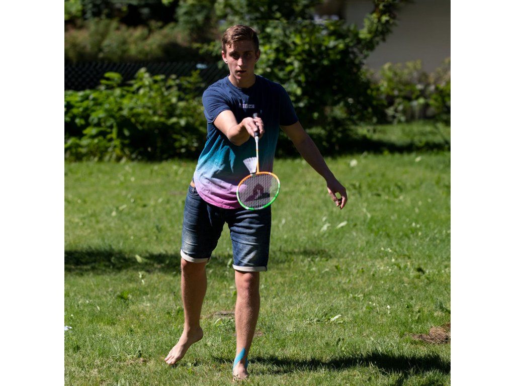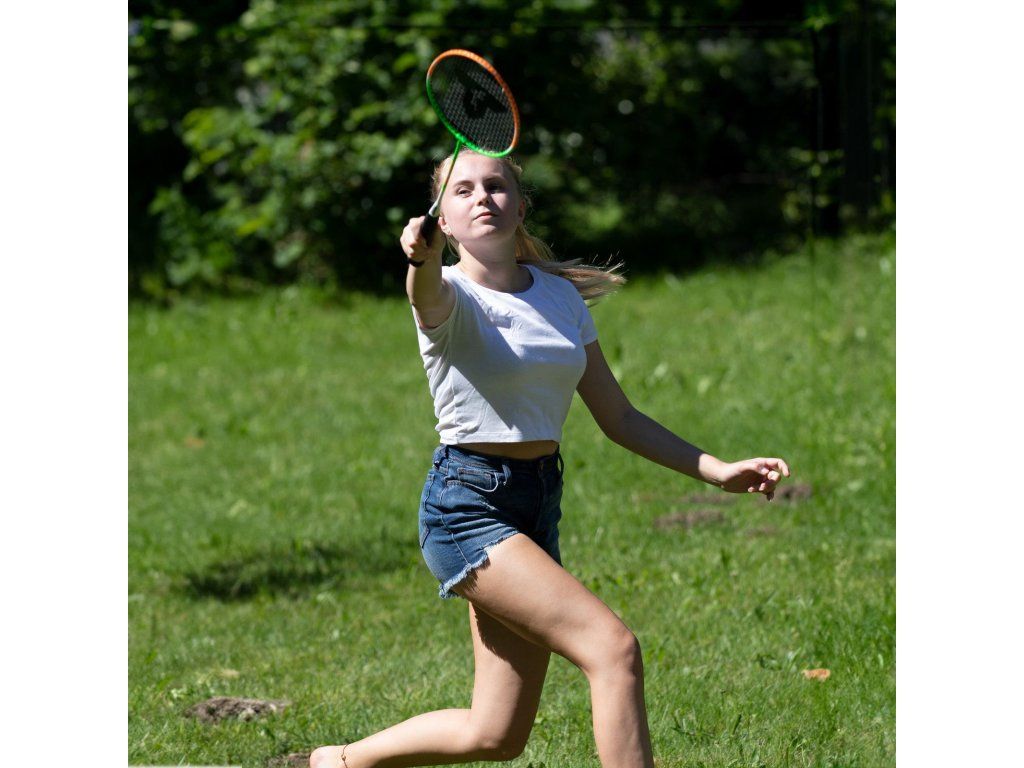 Súprava na bedminton 4 Attacker Plus ponúka kompletné vybavenie pre rekreačnú hru. 4 robustné rakety s kalenými oceľovými hlavami (každá váži približne 120 g). Rakety majú elastický výplet Lawntex s hrúbkou 0,8 mm, ktorý zabraňuje zaseknutiu košíčka vo výplete. Hlava a rukoväť sú spojené stabilným, odolným a plne uzatvoreným T-kusom, ktorý sa nemôže ohnúť. Súčasťou súpravy je rekreačná sieť s tyčami, kotvovými šnúrami a plastovými kolíkmi. Ďalej súprava obsahuje 3 plastové loptičky s korkovou základňou, ktoré sú uložené v plechovke. Všetko je zabalené v kvalitnom obale na zips s nastaviteľným popruhom na nosenie. Rozmery balenia: 68 x 23 x 7 cm Hmotnosť: 1,371 kg