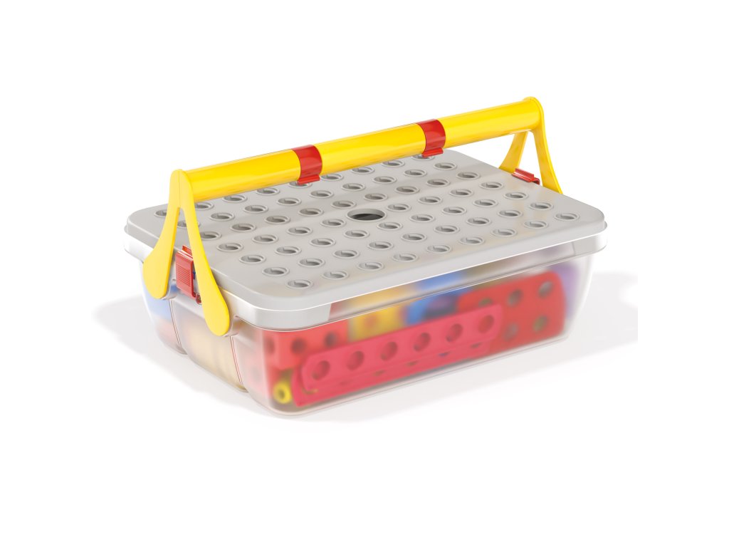 Stavebnica Tecno Jumbo obsahuje všetko, čo malí konštruktéri potrebujú na zostrojenie nákladných áut, bagrov, žeriavov alebo čohokoľvek ďalšieho, čo im príde na myseľ. Skrutky, matice, krídlové matice, kolesá a perforované dielce z odolného, netrieštivého plastu je možné zostavovať bez použitia akéhokoľvek náradia. Deti od 3 rokov budú na stavebnicu potrebovať len svoje ruky a predstavivosť. A keď sa dohrajú, môžu všetko uložiť do praktického kufríka. Ten má navyše aj držadlo a jeho veko môže slúžiť ako základňa pre stavanie. Stavebnica Tecno rozvíja koordináciu, logické myslenie aj tvorivosť a zábavnou formou pomáha deťom pochopiť základné princípy mechaniky.