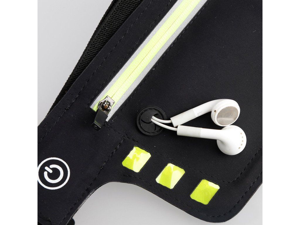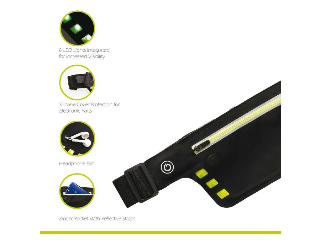 Inovatívna športová ľadvinka na mobilné telefóny, kľúče atď. s integrovanou LED technológiou pre najlepšiu možnú viditeľnosť a tým aj bezpečnosť za súmraku a tmy. Celkom 6 jasne zelených LED svetiel môže rýchlo alebo pomaly blikať alebo svietiť stále. Vodiči bežca vidia už z diaľky! S touto ľadvinkou výrazne zvýšite svoju bezpečnosť! Ultra plochá LED technológia sa neopotrebováva a je ideálna pre beh. Súčasťou popruhu je integrovaný vypínač, ktorý sa ovláda zvonku. Športová ľadvinka Wheel Bee LED zaujme tiež svojou veľkosťou. Do priehradky s rozmermi 16 x 9 cm sa vojdú telefóny do veľkosti 5,5 palca, vrátane skutočne veľkého iPhonu 8 Plus. Ľadvinka je vyrobená z mäkkého materiálu, ktorý sa dokonale prispôsobí tvaru tela. Ľadvinka ochráni telefón pred striekajúcou vodou, ale nie je úplne vodotesná! Má 1 výstup pre slúchadlá a vodotesný zips. Pásik sa ľahko nasadzuje a možno ho nastaviť od 80 do 120 cm. Je široký 4 cm a vďaka plastovej pracke na prednej strane sa ľahko otvára a zapína (podobne ako bedrový pás na batohu). Rozmery: 24 x 12 x 2 cm Hmotnosť: 0,096 kg Pred použitím odstráňte z vnútorného vrecka ochranný kryt batérie (plastovú fóliu). Batéria (CR3032) je súčasťou balenia a je vymeniteľná.