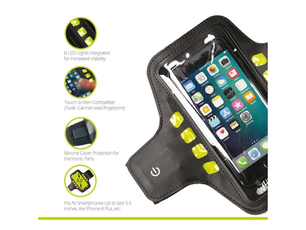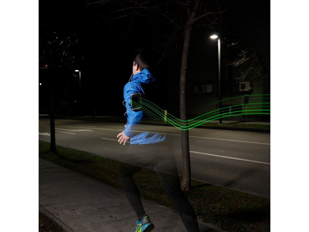 Inovatívne športové puzdro na mobilný telefón a kľúč s integrovanou LED technológiou pre najlepšiu možnú viditeľnosť a tým i bezpečnosť za šera a tmy. Celkom 8 jasne zelených LED svetiel môže blikať rýchlo, pomaly alebo svietiť stále. Vodiči bežca vidia už z diaľky! S týmto puzdrom výrazne zvýšite svoju bezpečnosť! Ultra plochá LED technológia sa neopotrebováva a je ideálna pre beh. Súčasťou puzdra je integrovaný vypínač, ktorý sa ovláda zvonku. Batéria (CR3032) je súčasťou balenia a možno ju vymeniť. Pred použitím odstráňte priehľadnú ochranu z priehradky na batériu (kontaktný zámok). Športové puzdro Wheel Bee LED zaujme aj svojou veľkosťou. Je vhodné pre mobilné telefóny do 5,5 palca, vrátane napríklad iPhonu 8 Plus, ktorý je skutočne veľký. Ovládanie telefónu prebieha cez priehľadnú prednú stranu, ktorá je kompatibilná s dotykovou obrazovkou. Nefunguje iba otlačok prsta na odomknutie. Remienok je vyrobený z ľahkých materiálov a váži iba 50 g (vrátane batérie). Puzdro je vyrobené z mäkkého a príjemného neoprénu, ktorý sa nelepí na spotenú pokožku. Puzdro chráni telefón pred postriekaním, ale nie je úplne vodotesné. Má 4 výstupy pre slúchadlá na rôznych miestach a tiež ďalšiu samostatnú priehradku na kľúče. Remienok sa ľahko nasadzuje a je nastaviteľný pre obvod paže približne 30 cm až maximálne 40 cm. Pred nákupom si, prosím, zmerajte pažu, najmä ženy a tínedžeri! Rozmery: 18 x 12 x 2 cm Hmotnosť: 0,061 kg Pred použitím odstráňte z vnútorného vrecka ochranný kryt batérie (plastovú fóliu). Batérie: 1x CR2023 (súčasťou balenia).